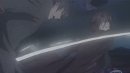Kyouichi and Hiyuu try for the X-Slash, but Yagyu nails them both. Pissed off at Tatsuchi being downed, Marie leaps into the fight. Yagyu holds her fire back and says that he’s disappointed in Suzaku. Marie suddenly looks shocked and stops attacking. The camera zooms back to show her spitted on Yagyu’s sword. He flips her off it and then kicks her away and into the darkness below.