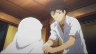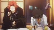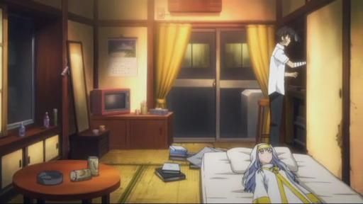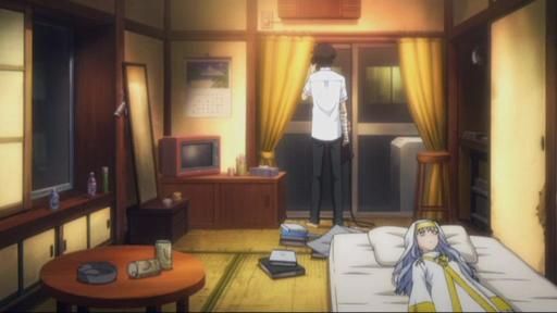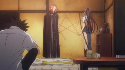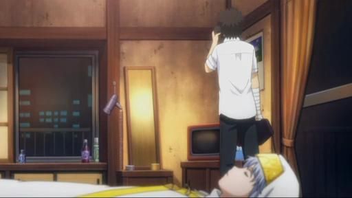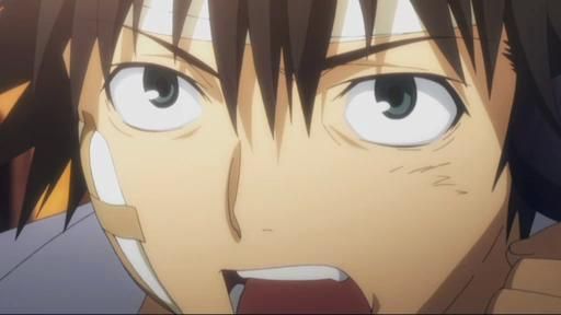 Consider this an argument for changing the source to make it suck less. Would it really have hurt anything to have another Kaori beat Touma up again instead of calling him on the phone? Or Stiyl to set fire to something while vandalizing Touma’s apartment? Hell, put Touma in a Bonta outfit for his "I’ll get stronger for you, Index" speech. I’d have been a fan. Sure, I’d have been confused as hell, but at least I wouldn’t be complaining about being bored. In fact, let’s just have all portions of this show that don’t involve magic or ESP be told using sock puppets. It certainly can’t be sillier looking than Komoe’s magical brain lesson.