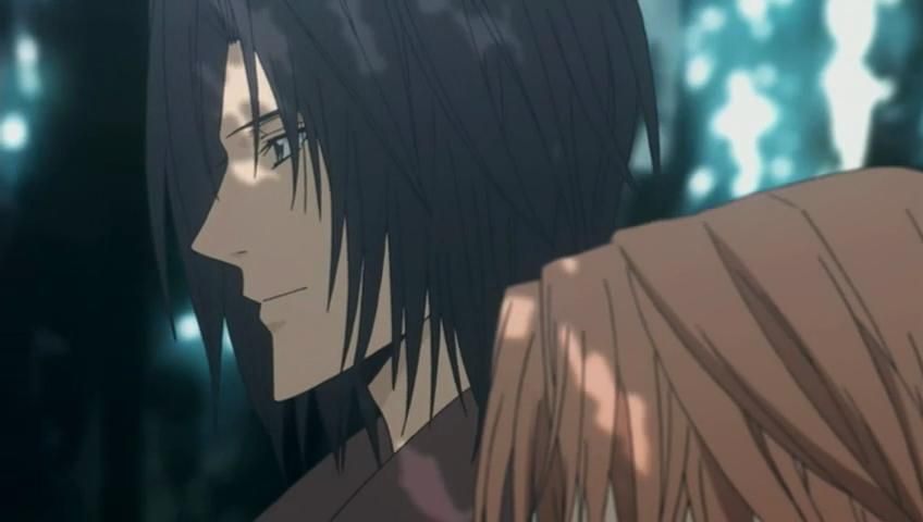 Maaaaaan. If the episode itself had been anything like the OP, I’d be on board. Sure, I’d still make fun of it for being fruitier than Carmen Miranda’s Hat Boutique, but I survived JCStaff’s ninja man-boy love affair escapades with only superficial wounds. Plus, this has the added bonus of the lead bishie apparently being the reincarnation of the girlfriend of one of the other protagonists. The potential for the jokes there is… well… it’s simply fantastic. Of course, I can’t keep all these bishies straight anyway, pun not intended. There are at least two or three now with longish black hair, and if the evil glasses one removed his glasses, I’m pretty sure I’d have him confused for the others too. Or maybe they just are all the same person and it’s the Sailor Moon thing where wearing slightly different clothing is enough to completely mask your identity.