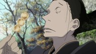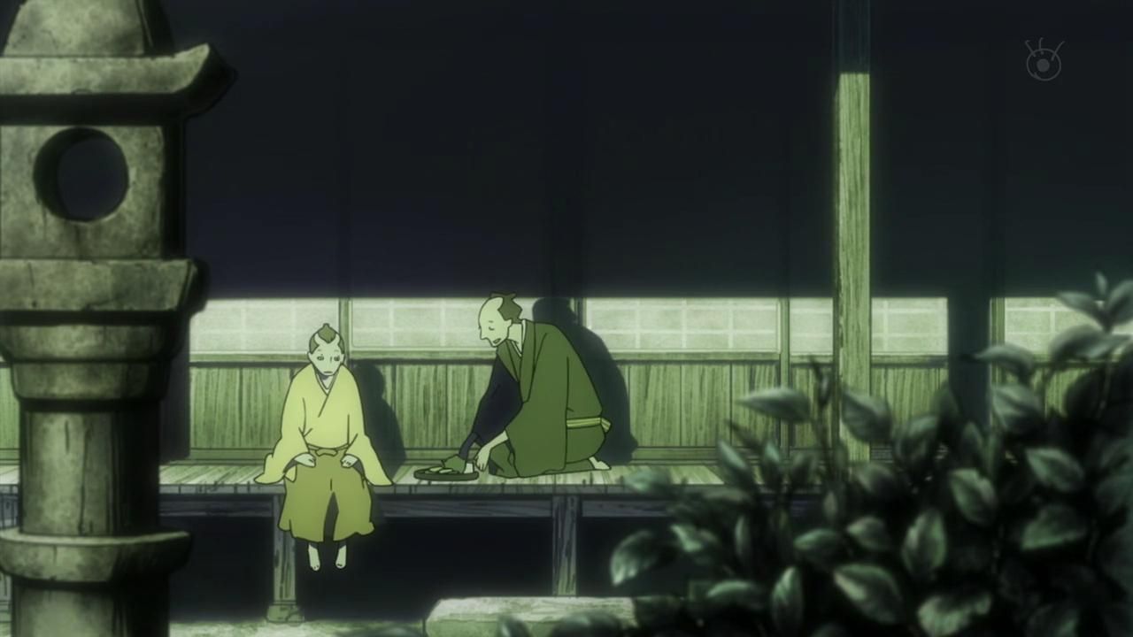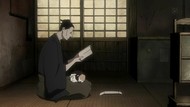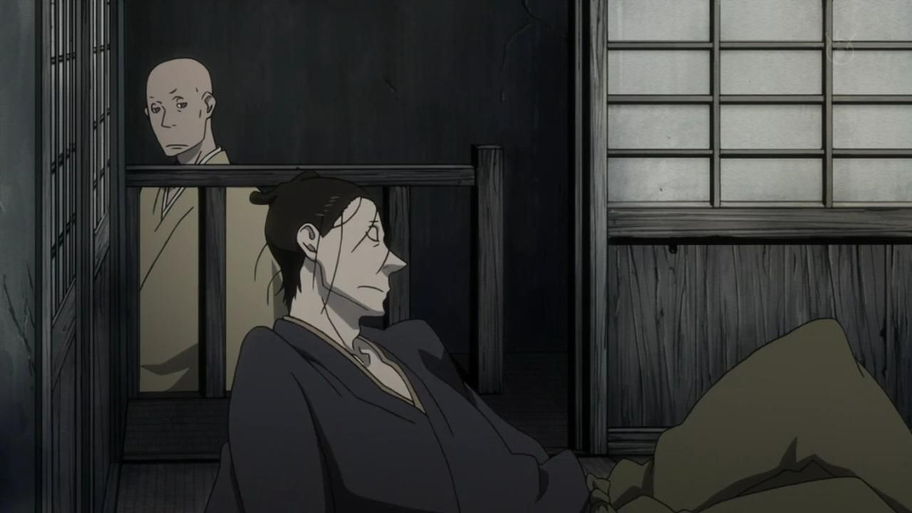The music was probably the most enjoyable part of this one for me, but that’s still reaching. It was very very peaceful. I suppose it fit the mood of "nothing happens." The art and animation was predictibly terrible with nothing of note outside of the unusual style. Even Katanagatari looked rather animated compared to this, to say nothing of the basically unanimated fight scene shots of people’s faces. If you’re going to have samurai running around and you’re going play up how awesome they are, you could at least show that. I get that the focus is on listening to them write haikus about how hard life is the ol’ west when daddy doesn’t love you and your lofty noble soul would be crushed under the chains of the proletariat if you spent a day doing manual labor, but I’ve seen more dynamic and engaging calligraphy.