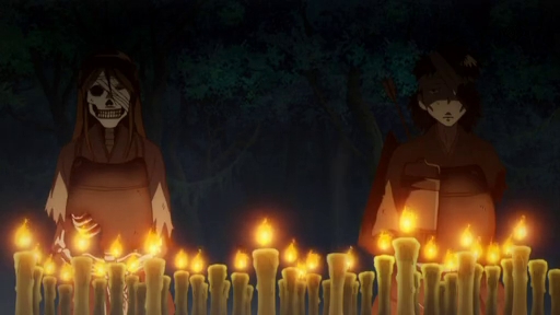It’s your standard 100 Tales of Horror episode, machinated by Ieyasu and her apparently dorky glasses ninja. That took a few credibility points away from her. Filling the role of the easily spooked is Mitsuhide, and filling the role of being a terrible storyteller is Nobunaga. And that’s about all that there was to the episode. Well, Hideyoshi saw Ieyasu scheming, but at her intelligence level, it’ll be another couple months before she figures out that Ieyasu is not in fact planning a surprise birthday party for them.