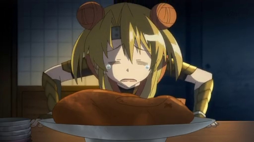 …All of which would be more personally satisfying if this episode hadn’t been pretty terrible. Outside of some rather… interesting bloodlust on Hideyoshi’s part for hawks capturing animals (A BUNNY! GET IT!), not much was going on. And Hideyoshi hadn’t even realized that they were going to eat the rabbit after the hawk caught it… after watching it kill a pheasant no less.