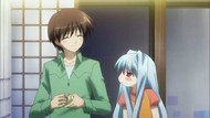 Otherwise though, an unusually slow episode for the show centered mostly around Konoha’s recovery from the attack cooking with all of the above happening in about the last four or five minutes. The first quarter of the episode was pretty much just boob jokes and shots of Konoha’s chest slowly bursting out of her nightshirt as she feverishly writhed and stuck Haruaki’s hand into her cleavage. Then they went shopping, and had some scenery porn on an exceptionally steep stairway, and Kirika came by to share in cooking time before the Scooby Gang finally got off their keisters and went back to addressing the issue of a killer doll attacking people. Priorities, Cabbage Master, priorities.