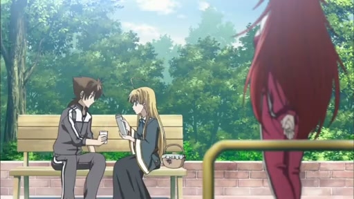 Yep. Back to a whole lot of nothing. Asia moves in with Stupid. Stupid trains. Stupid monologues about how he’s going to protect her. Rias staring distractedly whenever anybody says "bride." Yawn. Your beefcake ‘magical girl’ isn’t funny either. Even Zombiessu did it better, to say nothing of Lyrical Manoha wandering around in Inukami. The biggest mystery of this episode is why they felt the need to cover up Asia’s butt when she was in the shower at the start. Did we just think to oursleves, "There’s steam, it has to cover up something"? Use it to cover up Issei next time. Preferably through the entire episode.