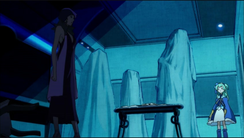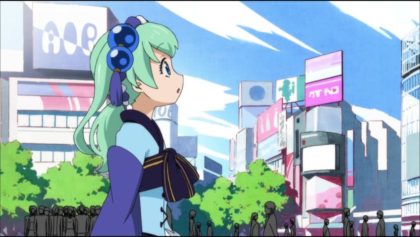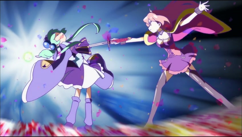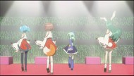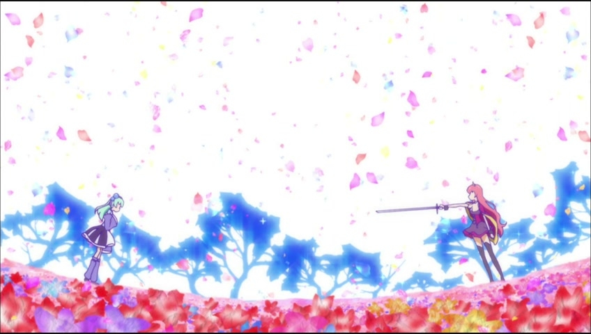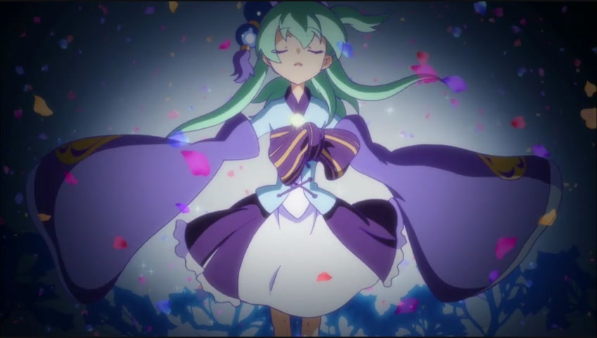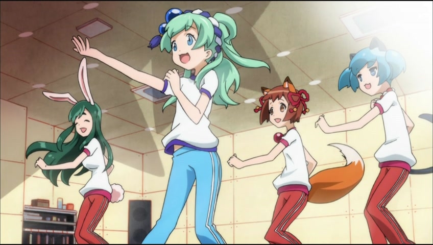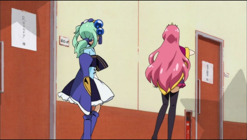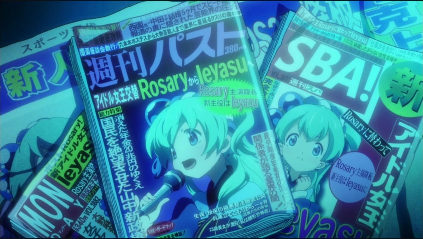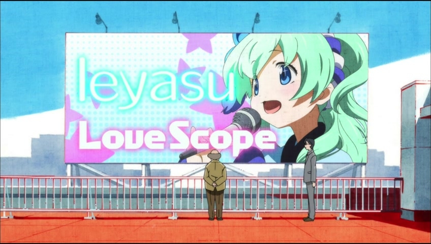 Anyway, here we have just an exceedingly generic story about Ieyasu wanting to sing and dance, then finding out it’s hard work, learning to overcome her own insecurity and becoming a real idol thanks to never saying give up. Gag me with a fork. Of course, after a training montage and insert song, her idol turns out to hate her for stealing her thunder. Shock and surprise. At least Nobunaga then shows up and stabs her, taking her magic heart or whatever nonsense that is because she’s going to conquer the present world as an idol. Yeah, sure. Whatever.