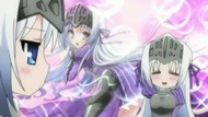 Well, at least they introduced a new… irritatingly screamy… character in between having the characters just sit down and literally tell each other who they are. My theory about amnesia being a communicable disease in Japan prevented by constantly repeating every facet of your character is looking more and more likely. "I’m the genius magic girl!" "I’m the vampire ninja!" "I’m the zombie’ssu!" "I’m the hot forehead girl with exposed shoulders!" "I’m the pointless friend with no distinguishing characteristics whatsoever!" "I’m the CG Dyson fan, the most dynamic character in the show!" Good work, team. We’ve successfully eaten up an entire half an episode and gone absolutely nowhere.