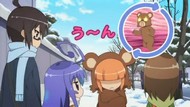 The first half was okay, but it did feel like they could’ve done a whole lot more with it. Mayoi was dressed up like a bear (with a generous definition for bear) and was trying to scare people. That was really about it though. Tsumiki just glared like you’d expect, Hime was scared like you’d expect, and Sakaki was the recipient of violence like you’d expect. They were basically just going through the motions without any particularly new twists or creativity on what we’ve already seen before.