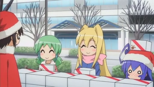 The second half was back to the cafe for Christmas part timery. It was not what one would call particularly exciting, although listening to Jingle Bells in June while it’s pouring rain here certainly makes you think. They work. They sell cakes. Mayoi makes one random twisted interpretation of Santa/lovers. Tsumiki tugs on Io’s jacket as they leave. The usual. Nothing to see here. I guess Sakaki trying to whore out Io as a special bonus to sell cakes was the high point of the half, but that’s being pretty generous.