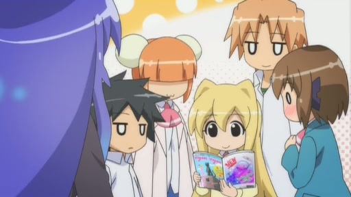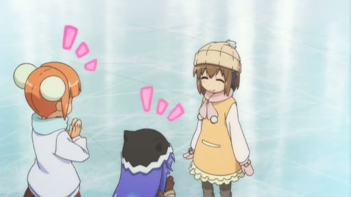 They go ice skating in Part A and just kind of a regular assortment of shenanigans in Part B centering loosely around fortunes, at least for the start. The hyperactive green creature was the star as usual. They could’ve done a lot more with her stealing Io’s glasses and running off too. Memories of Potemayo’s gags with that setup come to mind. Instead, they took the lazy route there of just sticking some novelty glasses on him and calling the joke finished.
