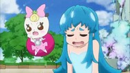 What surprises me is that it looks like the gimmick this time is to create a boom in semi-transparent card sales. The whole costume and layered dress-up routine is pretty much the same as Fantasista Dolls of all things, straight down to stripping the clothes off and leaving bizarrely shining skin-hugging… uh… paint? I thought this was supposed to be about dancing idols or something. To be fair, someone could tell me that a new PreCure was about buying marshmallow cereal to fight against the evil Soggy Kingdom and I’d believe it.