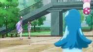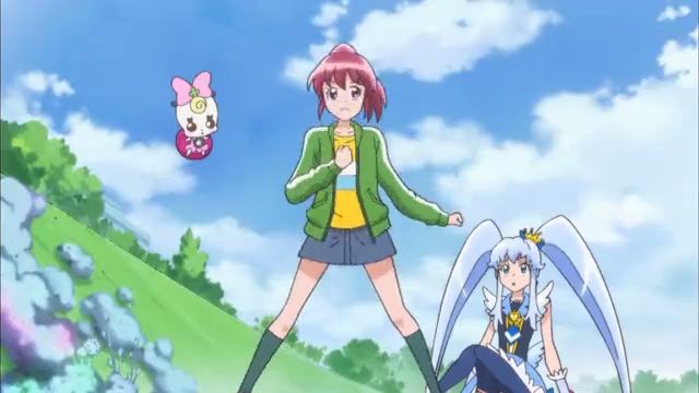 I’m well aware that this is the whole super special tenth anniversary of PreCure OMG GUYS but I couldn’t help thinking through this episode that PreCure is a little bit too into itself. A thought that turned into a terrifying nightmare when the ED hit, let me tell you. The whole thing was a nonstop sucrose fueled barrage. Nothing can be said that isn’t the most goddamned exciting thing ever! Hell, the CM break was prceded by one of them screaming at the camera “SHE’S GOING TO BE MY FIRST FRIEND!” Then when they meet, they begin shrieking about how cute each other is and trading (≧∀≦) faces. Some of it was in a pitch that only dogs can hear, and it wasn’t even the chew toy voices this time.