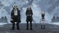 Not terribly surprisingly an almost entirely setup episode done on the cheap after the effort put in last week. The first half of the episode was pretty much all talking heads and being maudlin. I guess there was the half-assed slaughter to… I don’t know, show how badass the new guys are by having some complete unknowns job to them? Does that even count? They did find some spare change in the couch at the very end for a slight overture of an action scene, but it was still pretty weak and I really see no reason why it was done “over there, somewhere else” instead of, say, in front of the protagonists for the extra impact, shock, whatever. It was a very uneventful episode without much worth mentioning at any rate. The protagonists putzed around until moving to Next Designated Combat Area and some more grunts were set up and summarily dispatched except for the real boss fight… to come next week. Maybe.