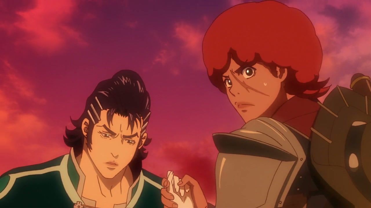 A pretty dull episode overall really. They get captured, have a bunch of unconvincing nonsense spat at them from heaven… quite literally, and then go traipsing off again at the end with not really much of anything accomplished or anything in their goalset/character whatnots changed for various cliffhangers. My question from last week about why exactly he was going so far and what was so bad about the tail was asked finally, although not answered at all, but otherwise, they’re still harping on the same tunes; the secret mastermind, fathers, how Elvis doesn’t get Afro, etc etc with the only particularly new tune thanks to Jeanne is destiny. The only real action this week was some silverware jousting, and even that was kind of token.  Â