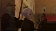 Speaking of which, the lead is about 15 out of 10 on the Blithe Scale. He spends the whole thing with a stoned grin on his face, happily providing random trivia about giraffes, the city, etc. There’s a very good argument to be made that he’s high as the moon. His reaction to being threatened with a sword and told that he’s less than a dog and should be murdered is to giggle about how silly that is. But we’re clearly supposed to feel for Ars-L4N, robotic wikipedia interface, and not because he has his world view cut out from under him, like, say, Ange. It probably also doesn’t help that his ‘spoiled kid who thinks slaves are okay’ is juxtaposed against ‘child soldier whose cultural dogma is the extinction of all other races,‘ and Ars-L4N smiles as he’s told about the eventual mass murder of his people. I’m sure they’re going for two different, both obviously bad-off civilizations, but slaves vs murdered for not being the master race aren’t exactly different but equal shades of grey. He also protects the little genocider and then gets sad about slaves being killed, trying to have their cake and eat it too. He’s already halfway to Jesus, feeling love for all mankind, and all he did was be dragged around and get a religious lesson from a zealot.
