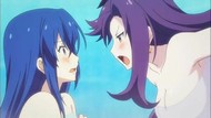 They tried to do this whole bit on how Saya felt betrayed by Amane hooking up with all the other girls and how their relationship wasn't monogamous/special any more, but all I could think is how utterly superficial all of their friendship and allies crap was. Or perhaps that the harem would immediately throw itself at anybody who smiles for them. They'd be taken advantage of a lot at mixers, that's for sure. It's a happier thought than wondering what the hell happened to the already severely lacking budget. How do we show that they're totally overmatched? Here's a half dozen stills. And then they can sit on the sidelines while the big girls play. Yeah, all that whinging on about friendship was for goddamned nothing. And by big girls, I mean the very first miniboss they beat… who is also going to be playing the part of the last boss for god only knows what reason.