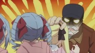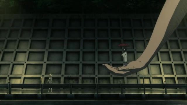 Character escaping from super secret facility. Seems like something you generally figure out in just a few short shots. Maybe need a minute at most unless you're trying to impress something like super powers or a special flavor of gore. Instead, we get five goddamned minutes of watching the girl trudge through the rain and various people rambling about it while staring at monitors. Sometimes, we watched characters watching monitors. And then, a girl riding a giant arm fought another girl dressed as a maid, and talking is a free action for everybody. So it's not a double length episode because they had to pack in so much that it was bursting at the seams, but because the pacing is godawful.