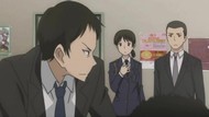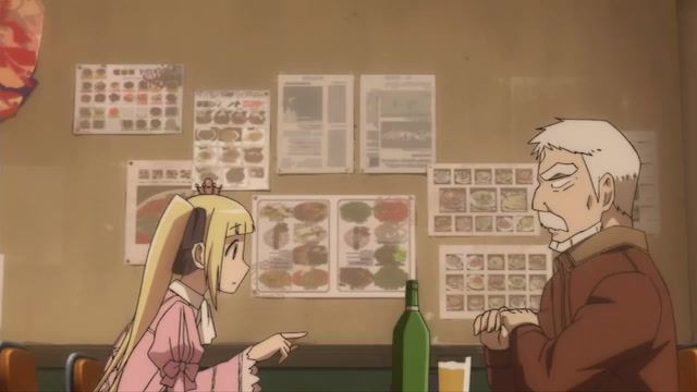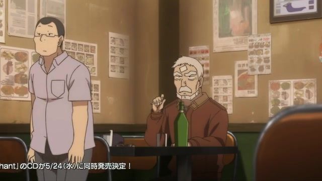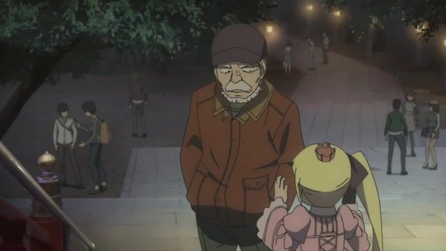 And I regret this immensely. Had I called it quit after the first half, I could've at least labored in ignorance, believing that every episode would be 50% filler, and 50% weird, poorly done action. Instead, this episode was 100% of the former. Twenty minutes to get to the girl moving in with him. He never develops any kind of personality trait besides occasionally scolding her, so the difference between him and the usual worthless sack of flour protagonist is that this sack has a beard and a scowl. Oh wait, I momentarily forgot that 50% of protagonists these days have bad reps because of a scar or 'mean eyes' or something. So just the beard then. Meanwhile, the girl never gets beyond Mysterious Waif Who Is Sometimes Socially Awkward. Hell, she spends the last third of this (half an) episode basically asleep while he putters around his house. All they establish for a greater narrative despite having a sitdown exposition session is that she wants to help the people she cares about. Clearly something that needed a double length episode to start.