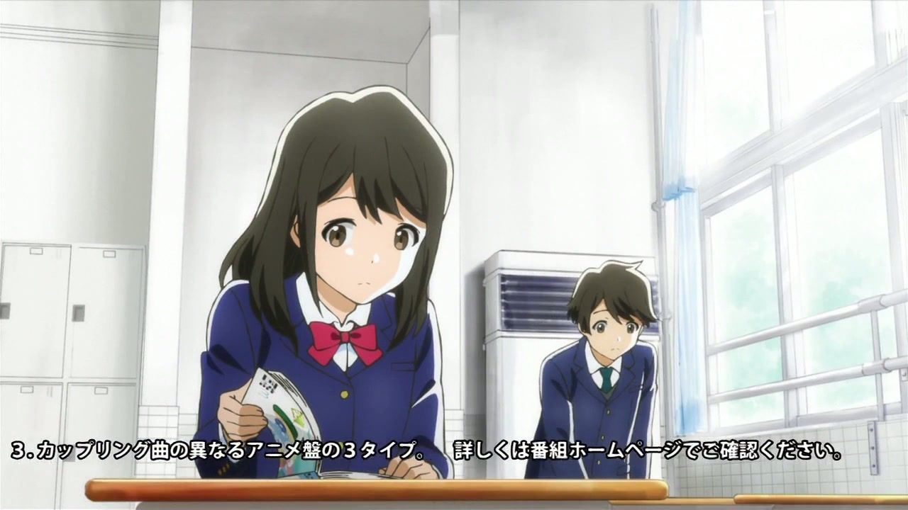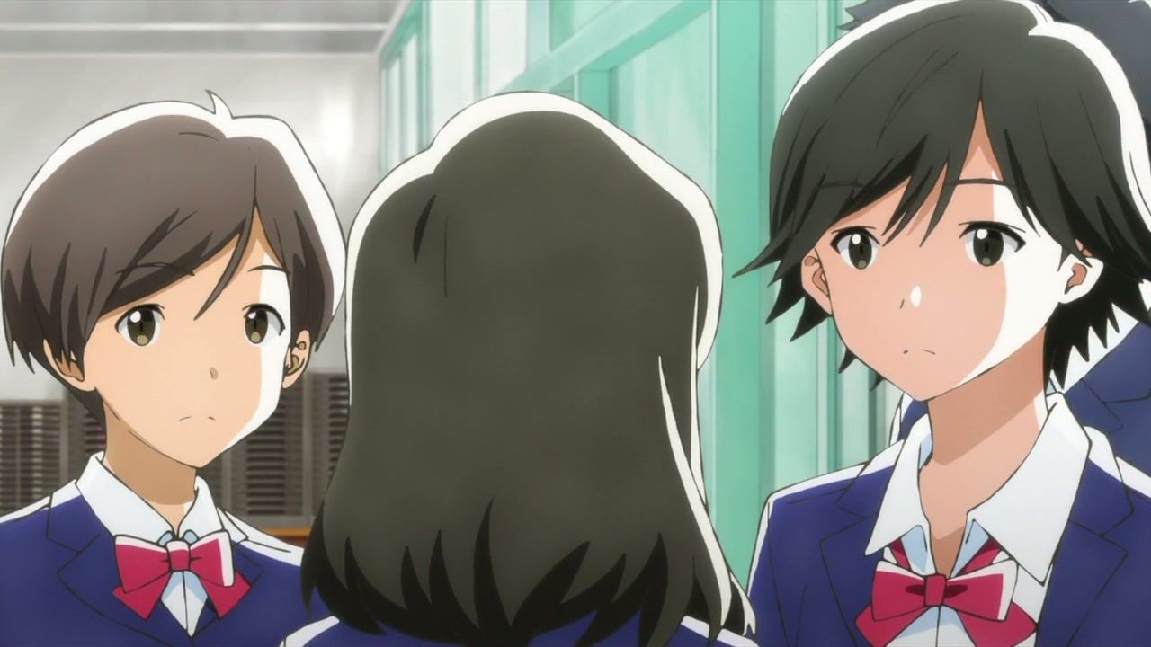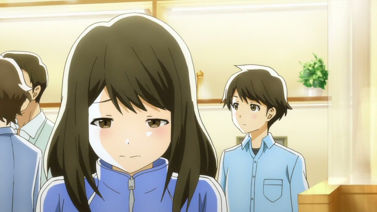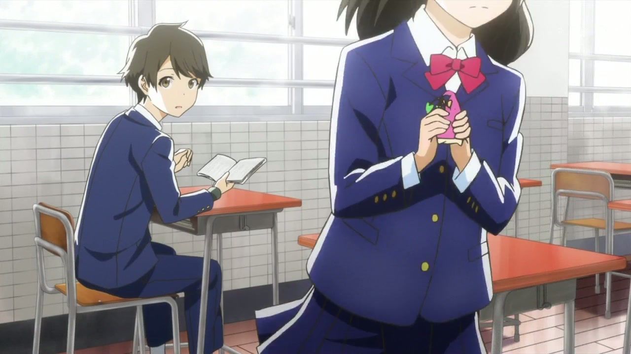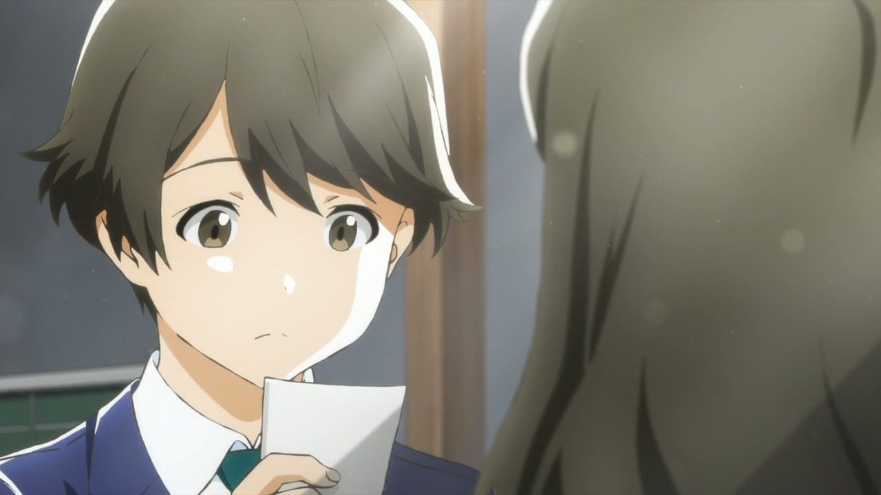 There is no drama. There is no story. There is no conflict. There are no characters. There is only sack. Sack meets sack. Sack narrates to self about sackiness. Other sack narrates to self about its sackiness too. Sack sack sack sack sack. Will this sack get up the courage to admit his feelings for the other sack? Will the other sack get up the courage to admit her feelings for the first sack? Who can ever say! Oh wait, I can. Because that's what the ED shows. So that's it. You've told us the ending, and shown that the journey, which should be the length of hopscotch court but is instead going to be a marathon, will contain naught but sacks. The entire thing is waiting for a couple sacks lacking any form of personality, ambition, hopes, dreams, souls, desires, or lives to go "I prefer you to the ten thousand other identical nondescript sacks." Plus the stroke effect.