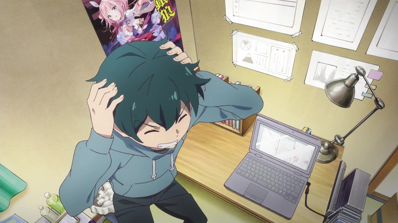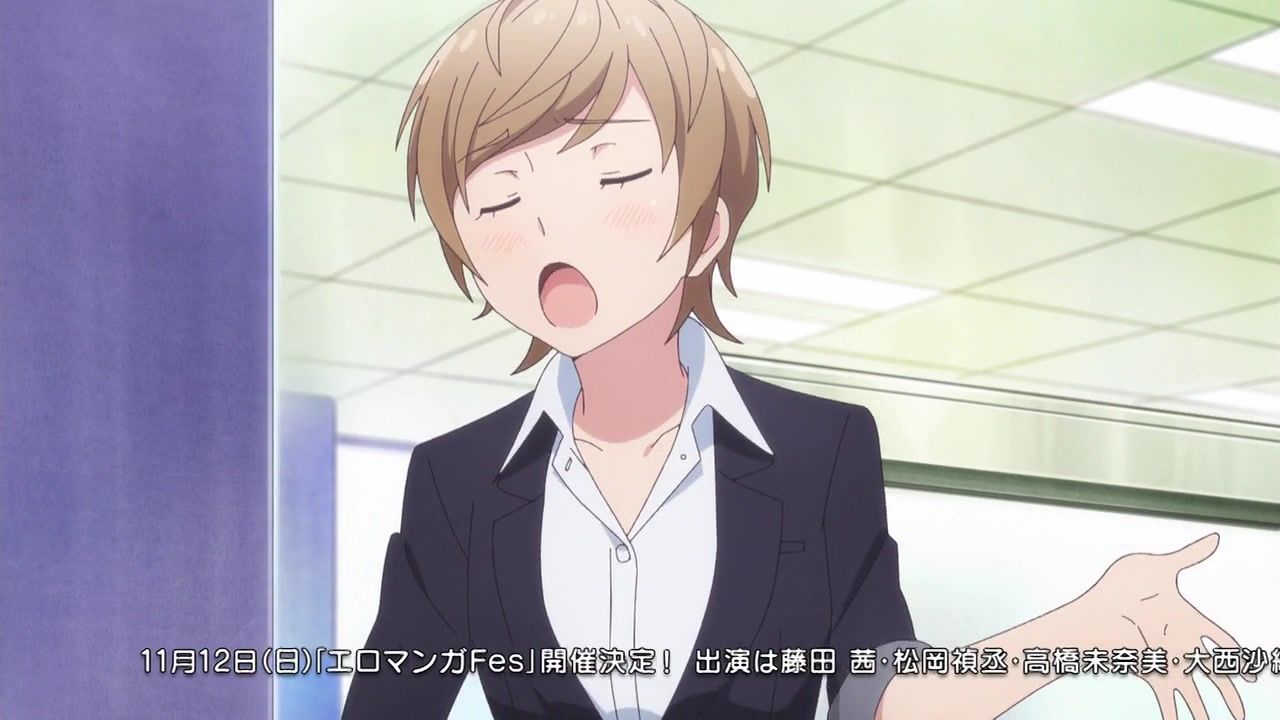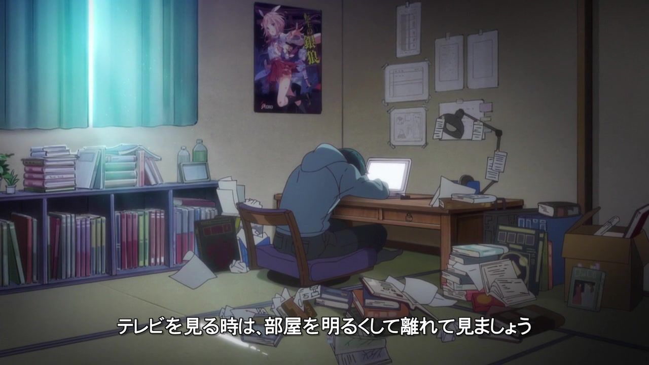 It was a struggle to survive the whole twenty minutes. I guess it has marginally more life than some of the amazingly atrocious things earlier in the week, but all the characters are all of the godawful light novel incest variety, wanting to bone each other, but being too insecure to do anything more than squirm their thighs as their genitals make gurgling noises, while also being superstars of every possible otaku medium. This might be even worse than schlock like OreImo because it doesn't even have a hint of any kind of conflict brewing to drive an iota of drama or any kind of comedy, so one has to ask what the everloving god is the pull here? An absurdly lionized not-cutsey not-shut-in and her not-romance with her not-brother? The shots from above the bed as she squirms, squeals, and spreads her legs on it? Yeah, got it.
