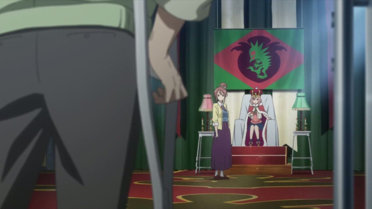 Aaah, the PA Works 'Working Girl' show, featuring an idealistic 18.0000000001 year old going on 5, who just wants to do the thing she loves, entertaining people, but is frustrated when she has to work with some not-immediately-friendly people and isn't immediately handed to her on a silver platter. Luckily, she has pluck, friendship, and tries her best, so everything is handed to her on a silver platter. It's completely different from all the other girls friendship club shows because the character sheet says that they're a year older, there's at least one adult male involved, and instead of just a club, it's the whole town dedicated to the activity, in this case, fantasy LARPing. Which is to say, not at all. Brainless moron moves in, gets tour, meets cast of 'quirky-but-not-really' characters, and an entire goddamned episode passes on exposition and 20 second character introductions, ending with an affirmation that she is indeed just the most precocious, girlish girl ever.