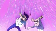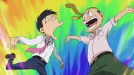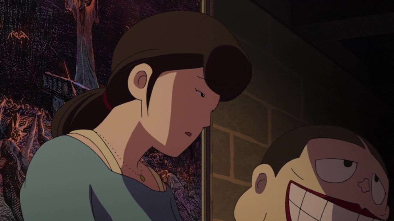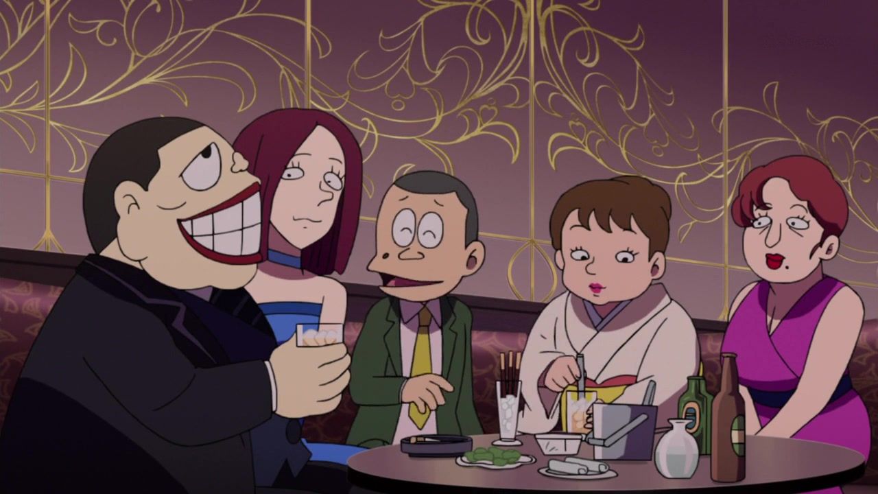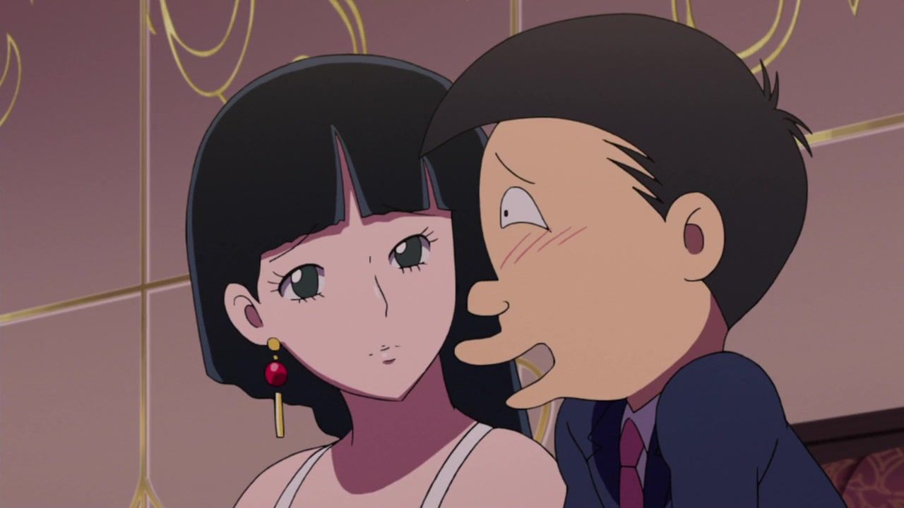 This was just as much anti-comedy as the bits I watched previously. You can't even really call it a Twilight Zone knockoff either. The first half's bit is a couple office workers going to a hostess club during lunch. The 'twist' that damns them is that they get drunk off their asses, rack up a huge bill, and get yelled at by their boss. I have no idea what the joke is supposed to be in there. The weird retro way they draw people? Especially their mouths? That their boss has a Hitler stache? The second one could at least pass for a Twilight Zone premise. He gives a frumpy lady a credit card where everything she buys with it is repossessed the next day. So she uses it to buy a makeover, whereupon he uses his magic powers to make her fat and ugly. It's not even anything subtle like she wakes up that way. He ambushes her in a dark alley and shoots uglification lasers.