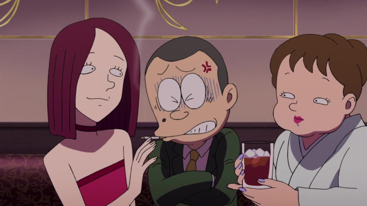 So it's not really humor in any way, dark or otherwise, nor can you call "salary men slack off by getting drunk" much of a horror story. It's hard to even call these twist endings either when characters pretty much straight up go "Surely he can't repossess the beauty I would get from a makeover," and especially not when they're resorting to laser hands to do so. So what the hell is it supposed to be then? A question I'm sure we'll be returning to for plenty more shows this season, even the ones without laser hands.