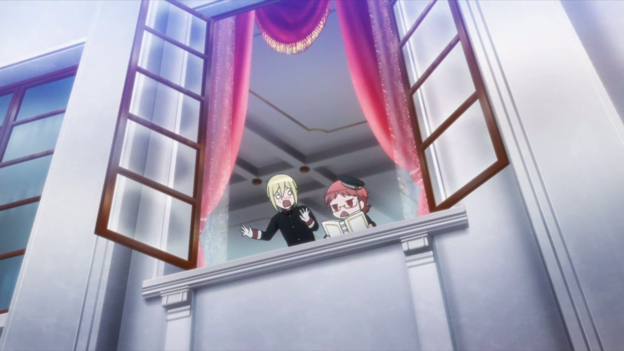 All you really need to know about this 'comedy' is that the only joke in the first five minutes is the guards cutting him off to go "Oh, you must be the tutor's son, because a child like you couldn't be the tutor." But then he is. It's hard to say whether things improve from there or not because it's just the usual boy band, introduced by throwing aside a curtain to a bluster of feathers while he's struck by how beautiful they all are (explained to the audience, of course). This is then followed by flowery borders and further internal narration of their relevant character traits. The above would consume goddamned half the episode.
