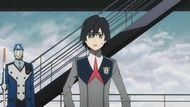 So the writing is godawful, but this is a Trigger show, so we're in it for the style and badassery, right? Then I hope you're goddamned patient. And not hoping for more than maybe about a couple minutes of style or badassery. And your version of those things are a twatwaffle running around, screaming his head off while the scenery falls apart and robo lions run past in the background. Our protagonist's big moment of triumph is when he doesn't run away from a magical girlfriend kiss contract bit. Or perhaps it's how he yelled that dying is bad. Boy, do I feel spoiled for choice. It's not even clear he then piloted the robot he was pulled into or just ran in a hamster wheel inside it that changed it from a robo lion to a robo woman, complete with closeups of its bulging breasts. Somehow, that's a step up, at least according to the peanut gallery who hailed its advent by literally raising their hands in supplication of its glory. And, of course, it immediately one-shot the lion. That's the power of having robot boobs. Or friendship. Or darling. Whatever.