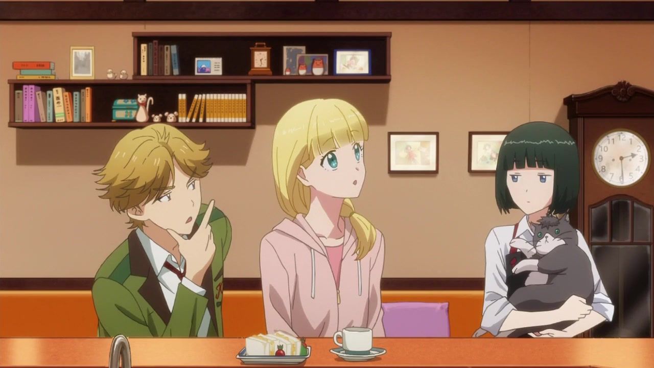 Well, since this episode lacked anything approaching a narrative, or development, I guess we'll just be focusing on the cardboard cutouts that are the characters, a pack of superficial ninnies. There's the bland Everylead, who spends the whole thing bumbling around, occasionally being aghast at the manic pixie girl's manic pixieness. There's the exceedingly nasal and shrill manic pixie girl, who is impossibly naive, kind, and lavishes chaste affection and attention on the protagonist from the word go. There's the screaming sidekick, who screams, a lot. There's the manic pixie girl's sidekick, who is violent, abusive, and constantly announces how naive and kind the pixie girl is. And there's another manic pixie girl, who's different from the first by having a slightly different hair style. Also, there's a cat. Of course there is. Boy, was that twenty minutes well spent.
