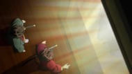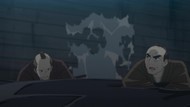 For example, when they're found on the ship, they can't fight because the corridors are too narrow to even draw their weapons, so they have to run away from… dudes swinging their swords like baseball bats in the same corridors. Then, after punching about three dudes, all pursuit and guards around the stopwatch of ultimate power vanish, only to reappear when the trap falls. But then they get out of it because the dude was secretly carrying an entire jacket worth of lit grenades the entire time… against his bare skin. How does that even get them out of the cage? At this point, a ninja nicks the magic watch from them and then, about five minutes and a day later, that sends them to an alternate reality where mechanical dolls roam the streets to act as shot callers for the battery of cannons someone built into a hill pointing straight down, someone's pulled in warlords from all over history to be their personal bodyguards, and fashion's changed to be really into exposed abs.