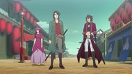It's hard to pick where to start with this show. Let's start with the good then and work our way down. The fights are kind of animated. Not all that well, but compared to other historical and/or boy harem shows minus the girl that makes it a harem, they're certainly more animated than that. I also think that it thinks it's being cheesy and over the top. At least, that's what all the repetition and corny lines announcing how hot blooded the one dude is approximately every three minutes would suggest. It could, however, just be a really lazy writer. It's hard to tell. And then we get to the twin headed hydra of the writing and directing, both of which seeming to try to outdo the other in terms of sheer disjointed nonsense. Even things moment to moment fall apart.