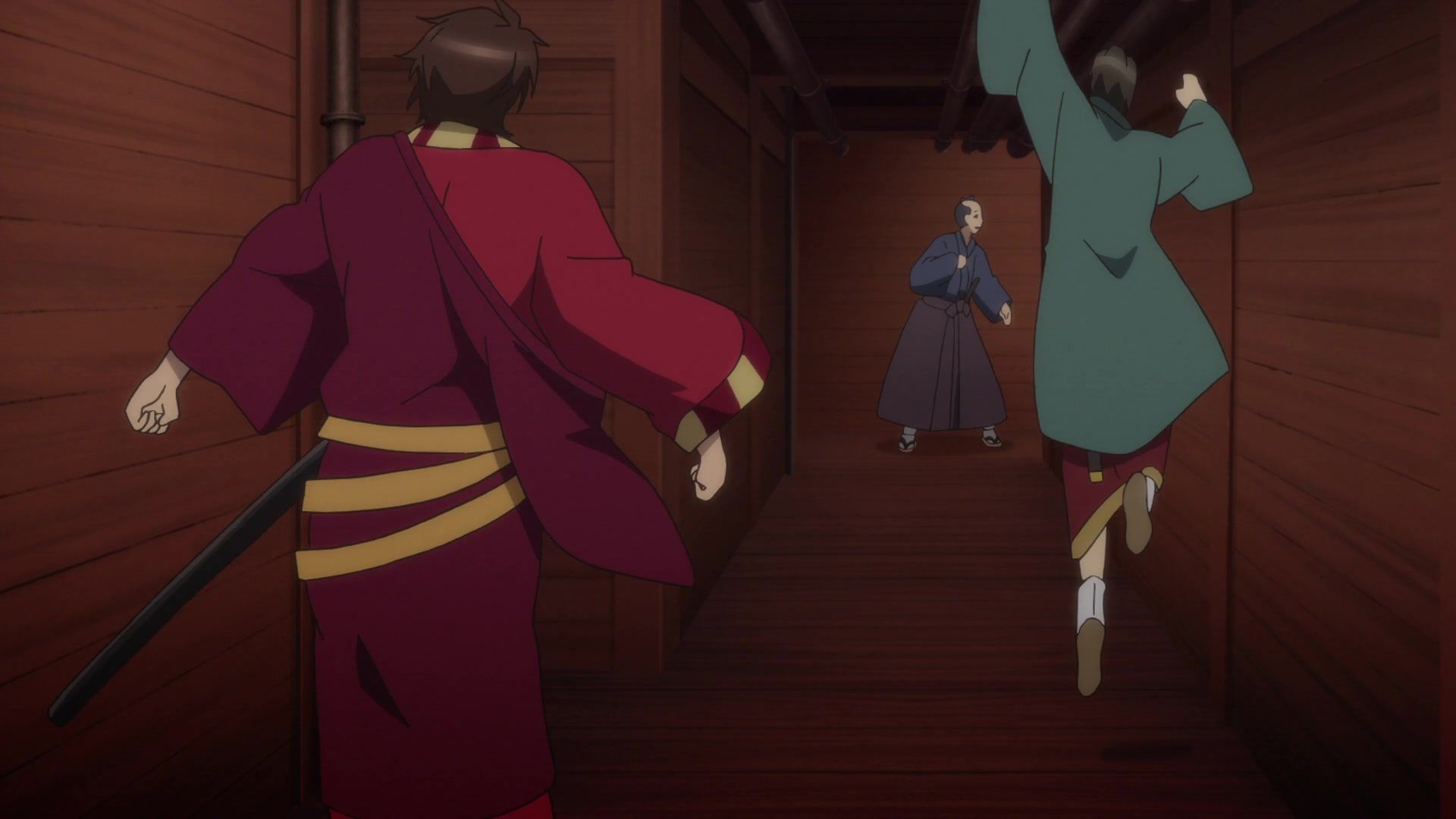 It's hard to pick where to start with this show. Let's start with the good then and work our way down. The fights are kind of animated. Not all that well, but compared to other historical and/or boy harem shows minus the girl that makes it a harem, they're certainly more animated than that. I also think that it thinks it's being cheesy and over the top. At least, that's what all the repetition and corny lines announcing how hot blooded the one dude is approximately every three minutes would suggest. It could, however, just be a really lazy writer. It's hard to tell. And then we get to the twin headed hydra of the writing and directing, both of which seeming to try to outdo the other in terms of sheer disjointed nonsense. Even things moment to moment fall apart.
