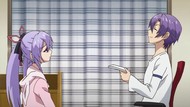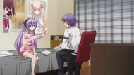 I question the wisdom of explicitly invoking Sister Princess and then going ahead and putting forth a really bland copy of, granted, OreImo, but still just a copy of it. The only real differences are that the sister character is a bit less of a bitch, and this is a bit trashier. OreImo was pretty damn trashy to begin with too. It's only five minutes into the episode before the upskirt shots start and it's censoring daydream nakedness and nipple slips with BUY THE DVD stickers. About half the episode is a tour of the harem, each one outside the sister getting about 60 seconds to flash their underwear or grab the protagonist's hand and force him to squeeze her boobs while ranting about how much of a virgin he is. They double up on the boob squeezing too. With blobbing noises and violent bouncing too, obviously.