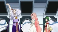 At this point, they realize that there hasn't been any action, and roughly 50% of the people attending the lecture are about to be totally written out of the rest of the show, so Kai demands a round of punchies before they go. And, uh, so they have it in one of the most embarrassingly poorly animated fight scenes not just in this show, but in possibly any show this season. I really cannot express how poorly animated most of this fight was. Not just for trying to pass speedlines-on-stills as action, but also bad music and sometimes not even bothering to put speedlines at all. It was baaaaaad. All this for Arrow to declare "I don't want to die, and I will save the world," so Kai can scoff and blush. Then, again, they realize that that was kind of terrible, so every female is covered in blushing and immediately begins rubbing themselves against Arrow and a corny sax kicks in to try to fix the vibe. Seriously here. Even for this show, the last five minutes of this episode was both terrible and bizarre. It's like the normal staff kicked off and left it to some dudes who hadn't worked on a show since the early 90s.
