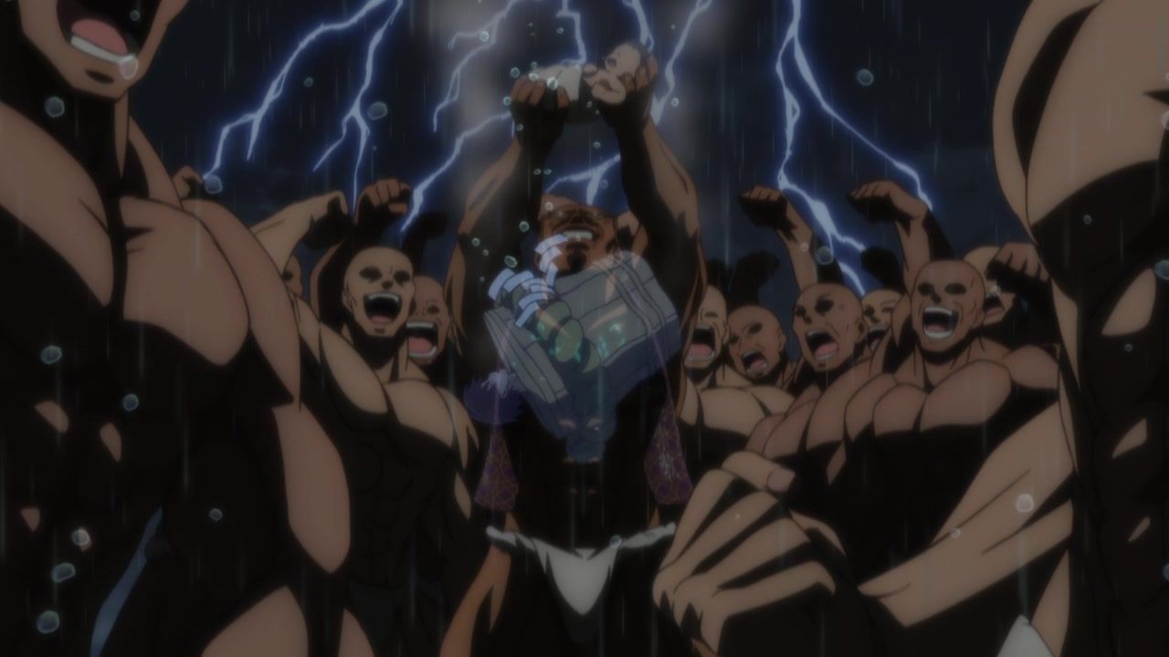What on earth is with the CGI here? It is horrific. And in the weirdest ways. Every single animal is like something copy and pasted from some 90s Canadian cartoon, whether it's a fox wandering around the village, a horse dragging a wagon, or a giant angry sheep. It's possible the budget just didn't have anything in it for anything else. While not the absolute worst animated thing this season, it's certainly in competition. Every time anything more intense than someone screaming has to be animated, they cut to an RPG 'parody' instead. Usually while also screaming. All the budget appears to have gone into the reveal of the naked 6 year old goddess at the very end, which is also where the frame rate for some reason doubles.