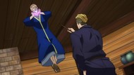 Man, when I get to the Friday shows where the humor isn't someone screaming at the top of their lungs, that is going to feel like such a relief. "BWAAAAAAGH! THAT IS NOT THE WAY YOU FIX A DOOR! BWAAAAAAGH!" This is a joke in the same way that being kicked in the face is a prank. And they just keep screaming. Not even the most banal gag can pass without someone going "AAAAAAAAAAHHHHHH!" The closest thing to a laugh from this show was seeing the ad for the OP during the commercial break, featuring the singer in a hoodie having an epiletic fit on the floor of a club while a businessman in a suit is sitting in a chair gesturing with incredulity at him and gold confetti rains down on both. Now that's… not exactly comedy, but at least I'm not the one being screamed at.