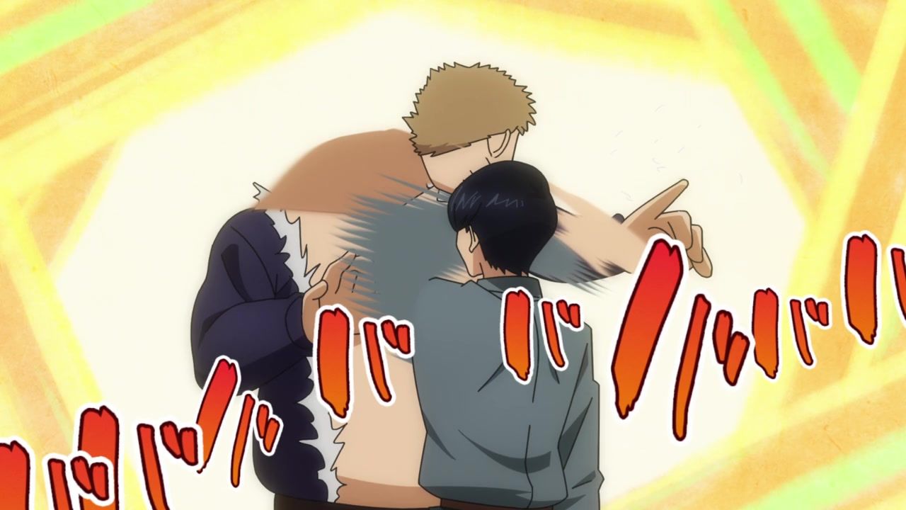 Man, when I get to the Friday shows where the humor isn't someone screaming at the top of their lungs, that is going to feel like such a relief. "BWAAAAAAGH! THAT IS NOT THE WAY YOU FIX A DOOR! BWAAAAAAGH!" This is a joke in the same way that being kicked in the face is a prank. And they just keep screaming. Not even the most banal gag can pass without someone going "AAAAAAAAAAHHHHHH!" The closest thing to a laugh from this show was seeing the ad for the OP during the commercial break, featuring the singer in a hoodie having an epiletic fit on the floor of a club while a businessman in a suit is sitting in a chair gesturing with incredulity at him and gold confetti rains down on both. Now that's… not exactly comedy, but at least I'm not the one being screamed at.