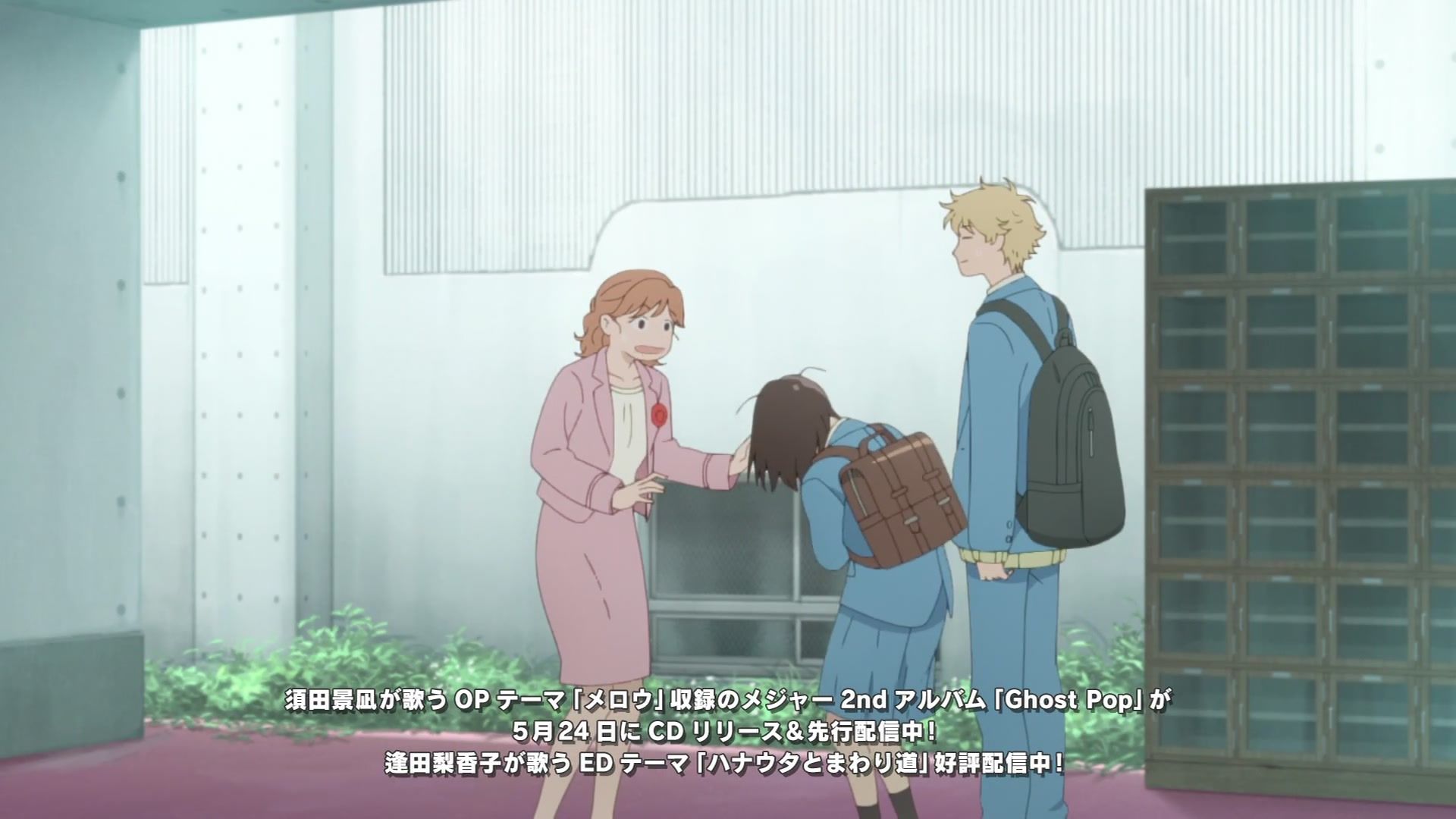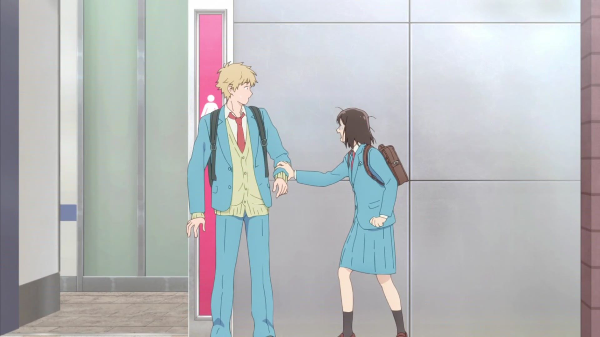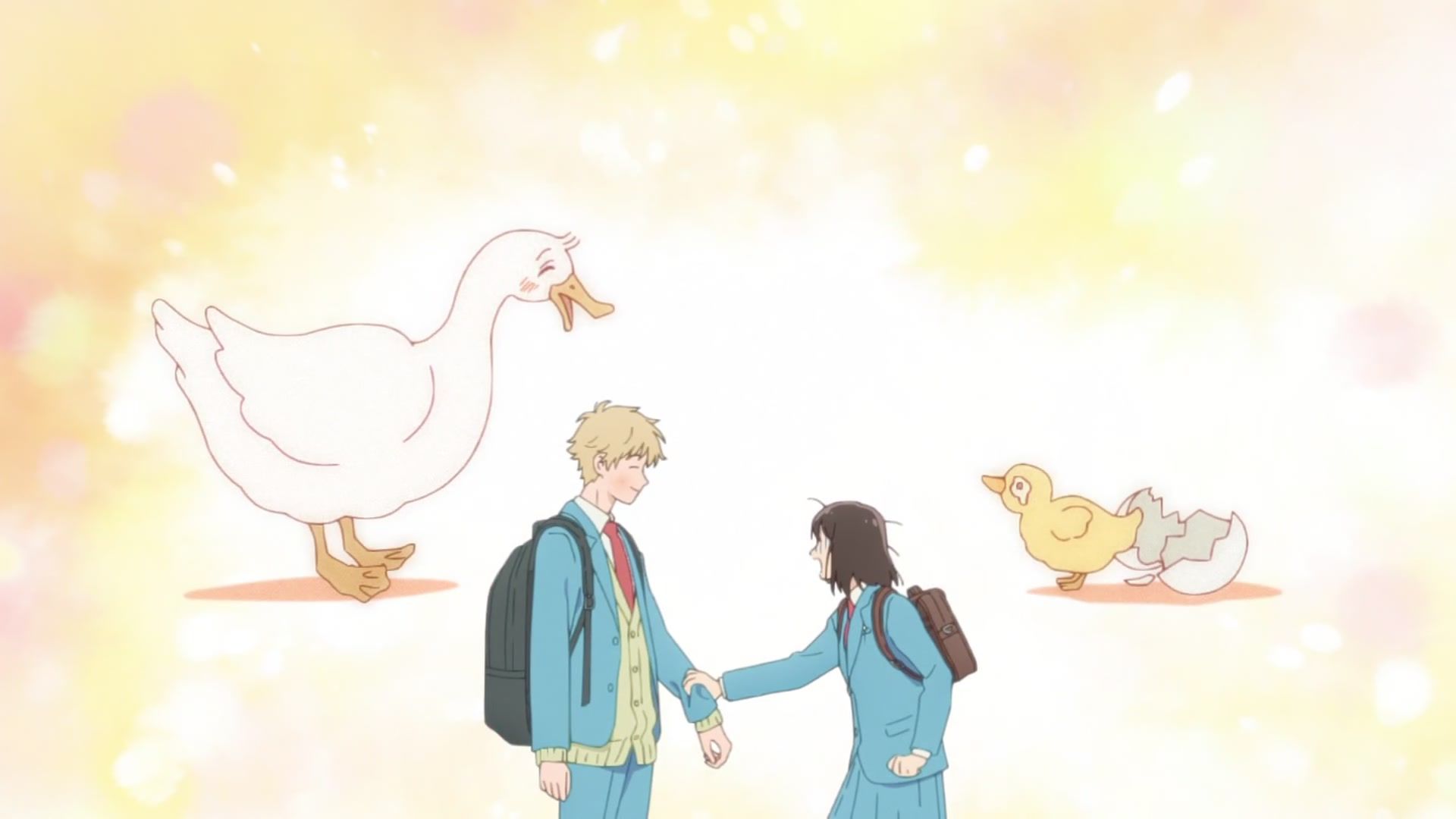 Aah, banality. Oops. I mean slice of life. Where, sure, they may not make jokes, or have character growth or development, but that doesn't mean that we can't replace the background with sparkles and pastels every 10 seconds while constantly cutting to random backgrounds set to soporific piano music, lulling you into a haze until twenty minutes have passed. She is awkward. He is friendly. Those are the character traits. They are shown by her internally explaining it and making faces. She wants to go to school… and does. Exciting times.
