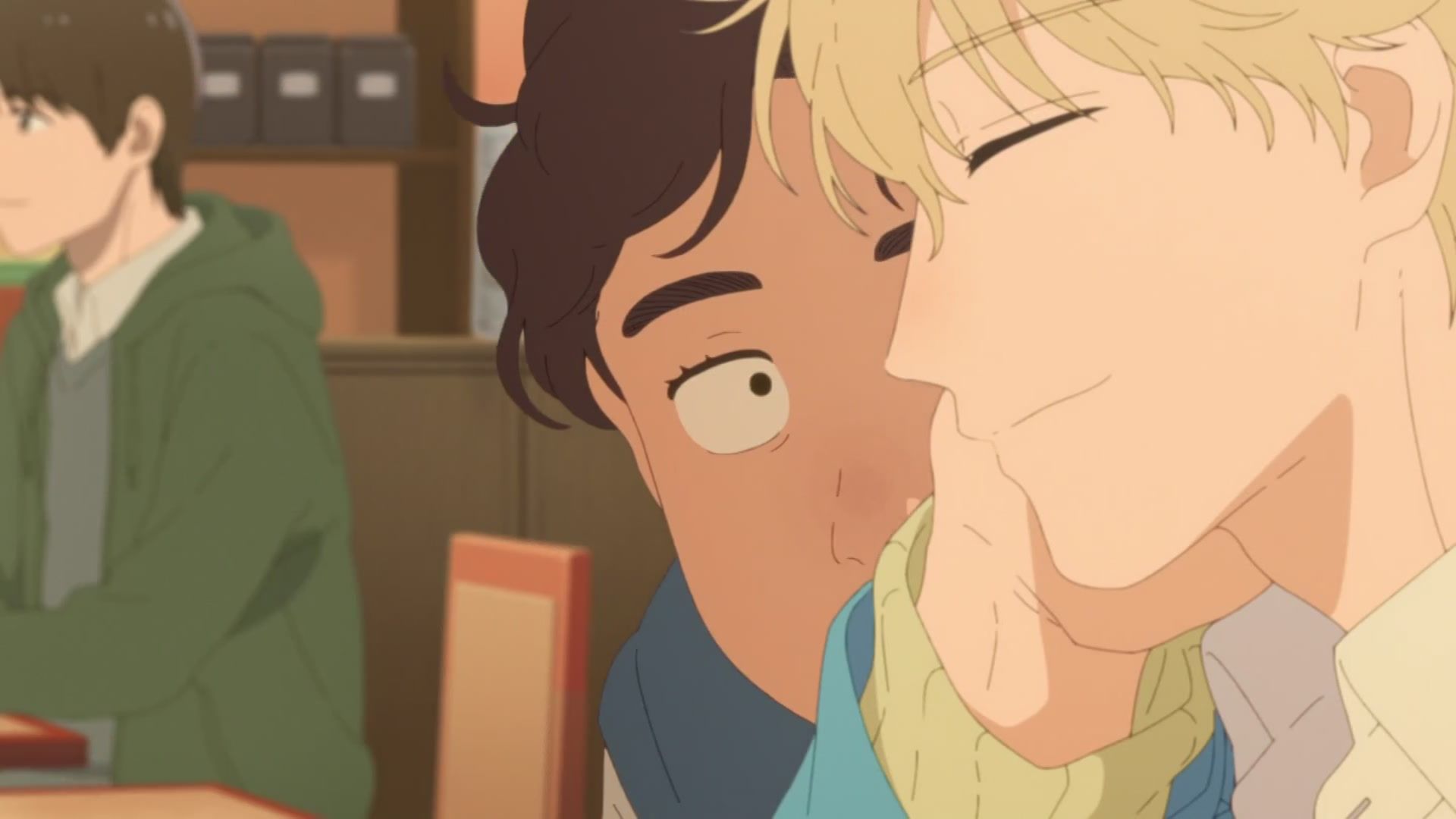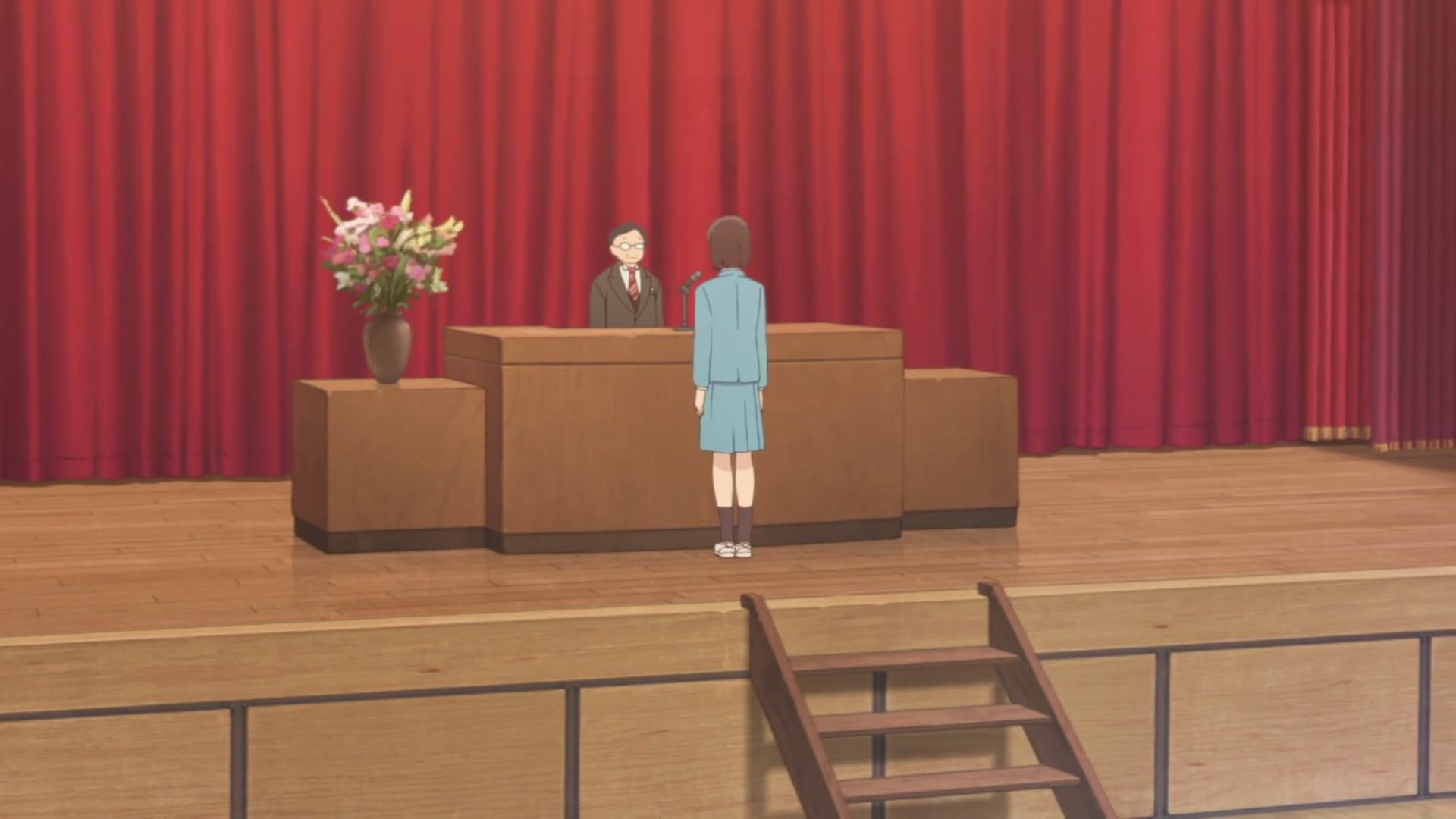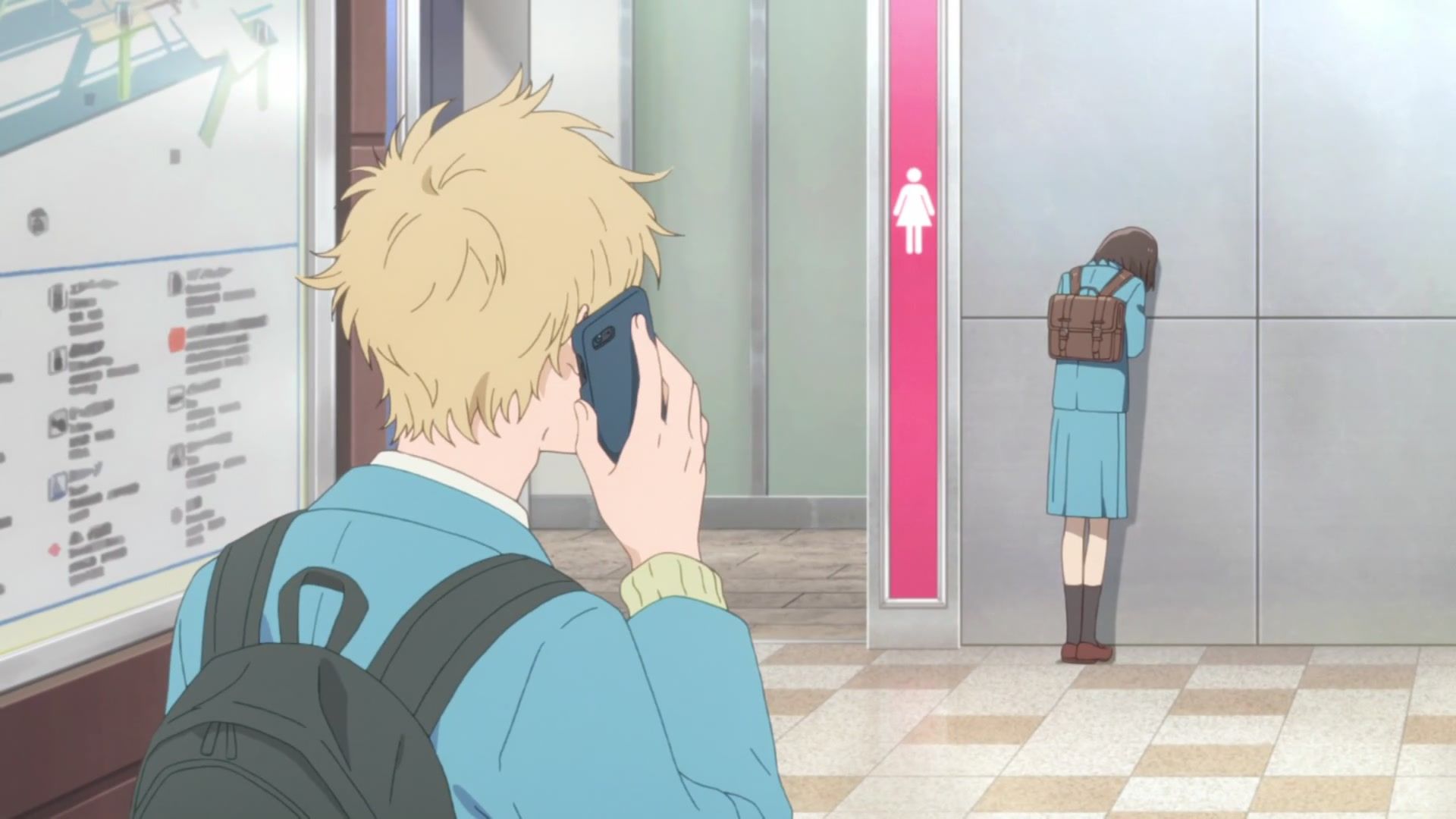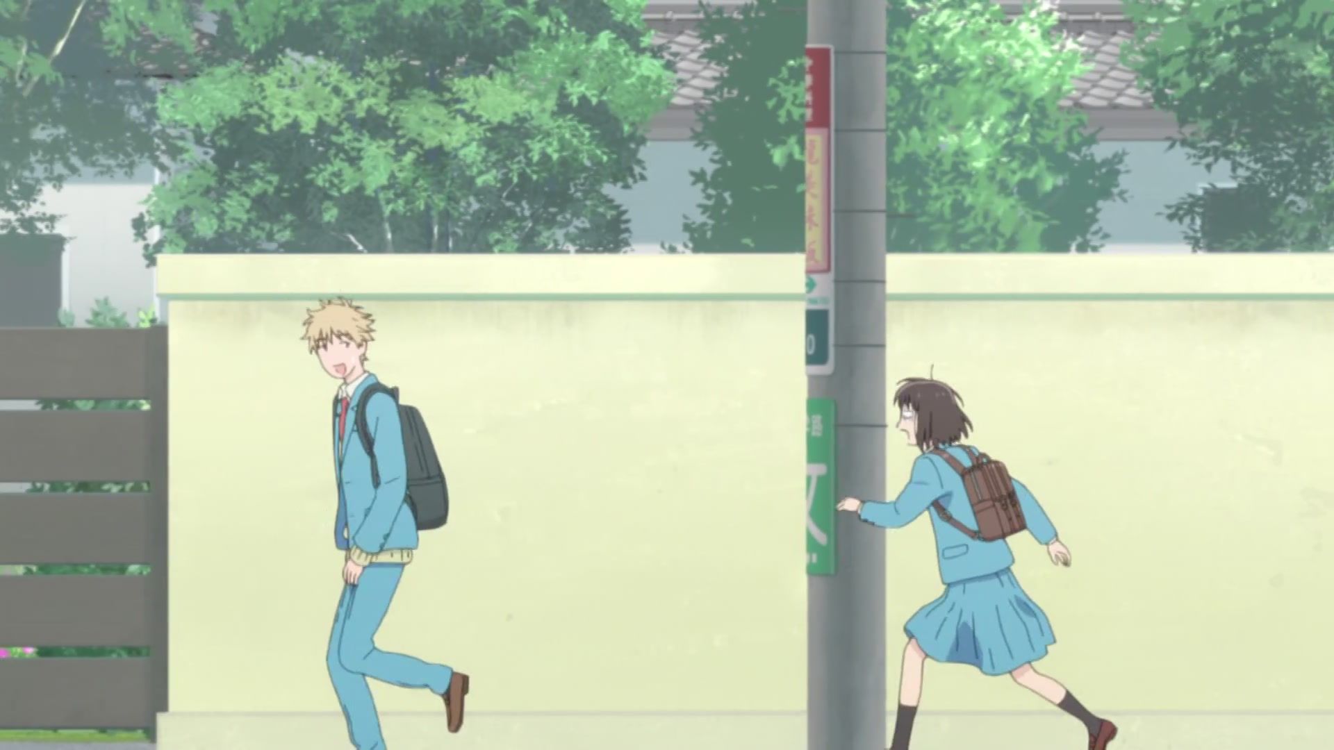 Aah, banality. Oops. I mean slice of life. Where, sure, they may not make jokes, or have character growth or development, but that doesn't mean that we can't replace the background with sparkles and pastels every 10 seconds while constantly cutting to random backgrounds set to soporific piano music, lulling you into a haze until twenty minutes have passed. She is awkward. He is friendly. Those are the character traits. They are shown by her internally explaining it and making faces. She wants to go to school… and does. Exciting times.