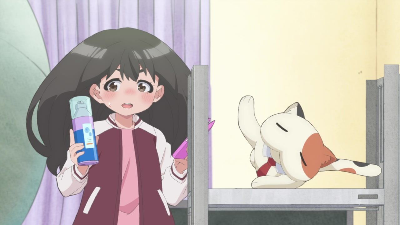 Her giant hair is really distracting, especially in all the closeup shots where it's her face and an entire wall of hair behind her. But I welcome the distraction as this is a comedy that relies heavily on high volume for its punchlines, and shrill reedy recorders as the background music to create a sense of whimsy. The audio is grating, to say the least, and makes it compare very unfavorably to, say, that GoHands show about a sardonic cat rather than one constantly yelling, and its capable but slovenly owner rather than this one who's unable to go five seconds without whimpering, mewling, yelling, or all three simultaneously.