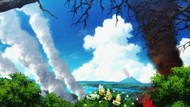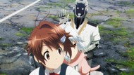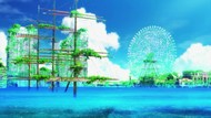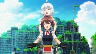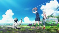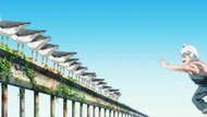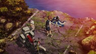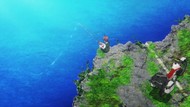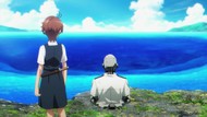 Anyway, it ends in the same place that it started, looking out over bloom-heavy scenery while swelling music plays. Which is the same thing that it uses for girls fishing. Or riding a motorbike. Or it's a day ending in Y. This should have been the central character driven story of the episode, but it's lacking in actual developments and especially contrast with any other scene, so it all blends together.