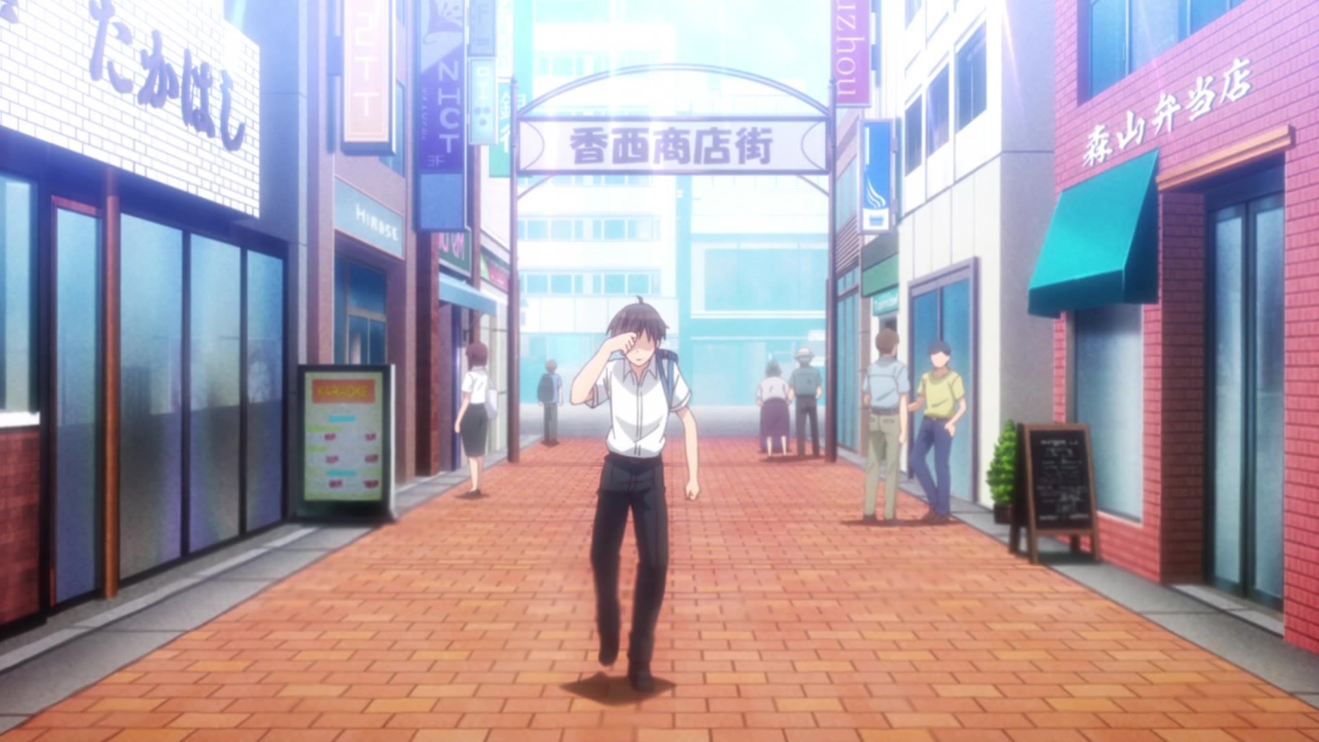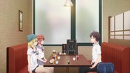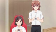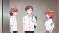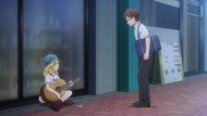 Just a dull episode really, where he's told to meddle and does bad anime cliches. We all know how it ends anyway, and there really doesn't seem to be any twists or turns to come, like he was dating the headband oral-fixation girl and something happened or whatnot. I dunno, I'm spitballing. Still slightly more tolerable than the Chitose show just because it's not wall to wall worshipping the ground this guy walks on. At the same time, his 'meddling' thus far is the same superficial dumb part of last week's resolution, just telling the sort of but not actually sad girl to knock it off and get some friends, so I can't say its attempts at inspiration teenage drama are working well either.