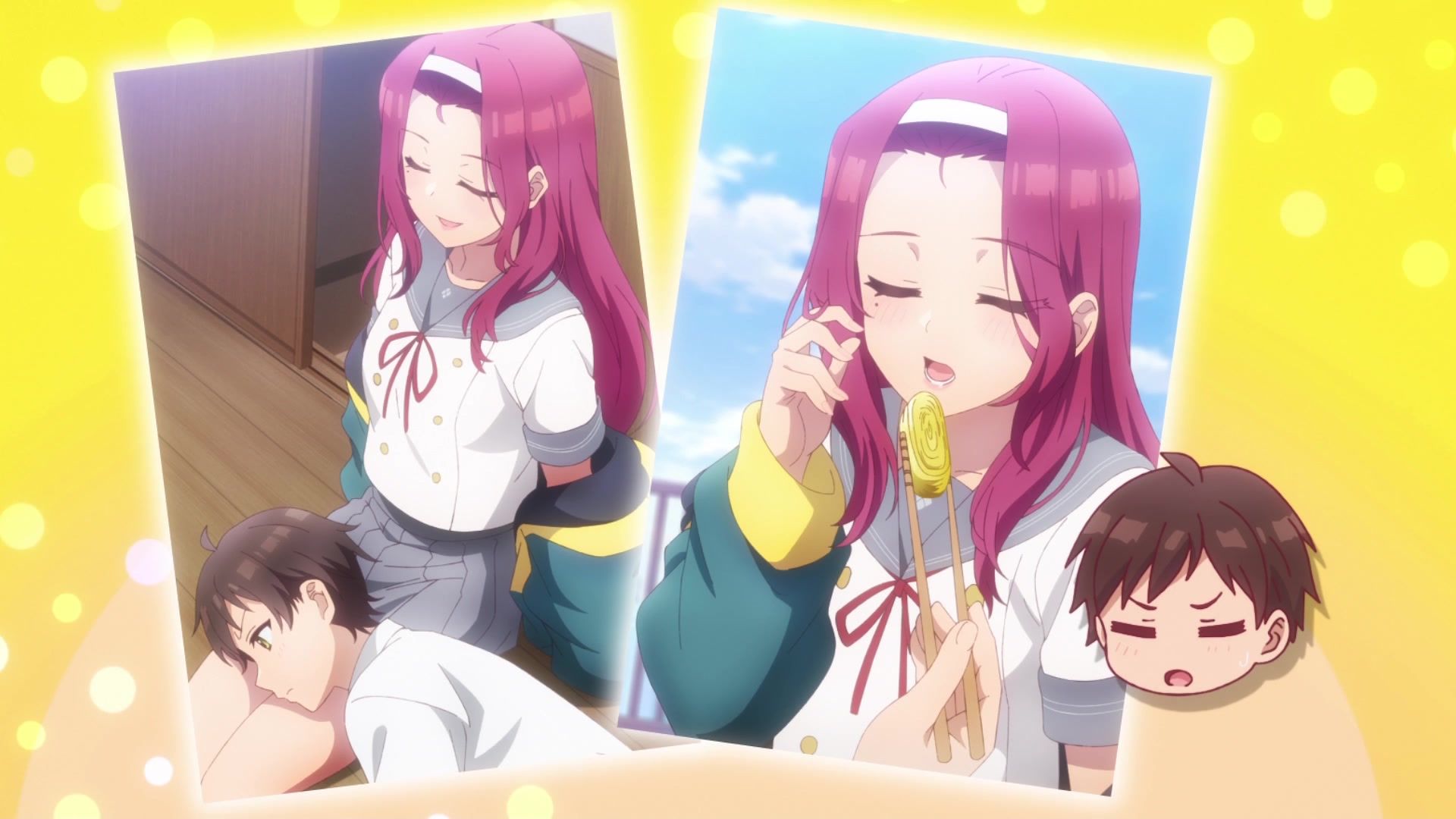 The big question I have about this episode is how he drained an entire glass of soda in half a second through a straw. It was… not a very interesting one, despite being a hard swerve into something different… and yet, also not really different at all. The entire thing was a flashback to his origin story with the sisters, including introducing two other new girls, though as much attention was given to his melancholy friend as either of them, and replacing her teasing dynamic with a more typical… uh… sexual assault magnet one with all the standard dumbass "grab, gag, and accidentally grope her" bits was not an improvement in the slightest. Especially when the artsy fartsy music girl was carved from the same mold.