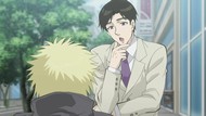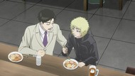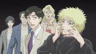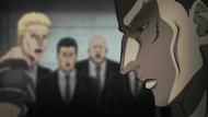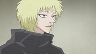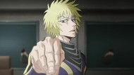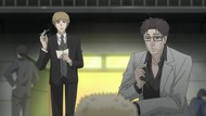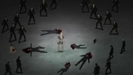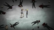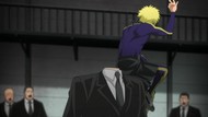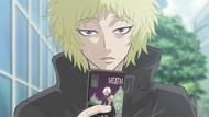 So no, one of the scant few action shows of the season does not make the most of it, and it is terrible. The pacing, which just spits out the premise in a minute long info-dump at the start and then pisses about, the characters who angrily yell out their special powers and reason for mass decapitations, and of course, the lack of animation and direction. He doesn't behead people. They were beheaded. Off screen. No, you can't see it. But we'll tell you it happened, at length. Exhaustive length. It's like the worst passive voice for story telling imaginable, but in visual form.