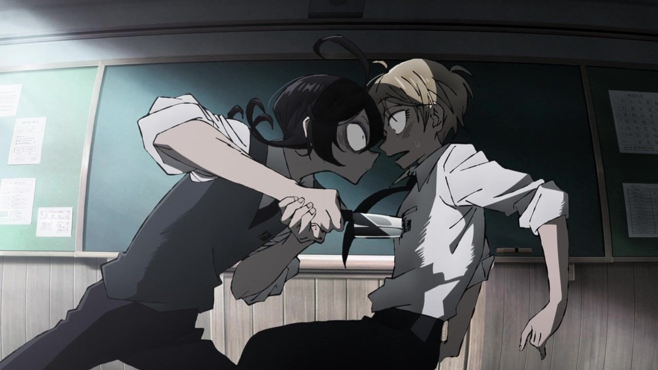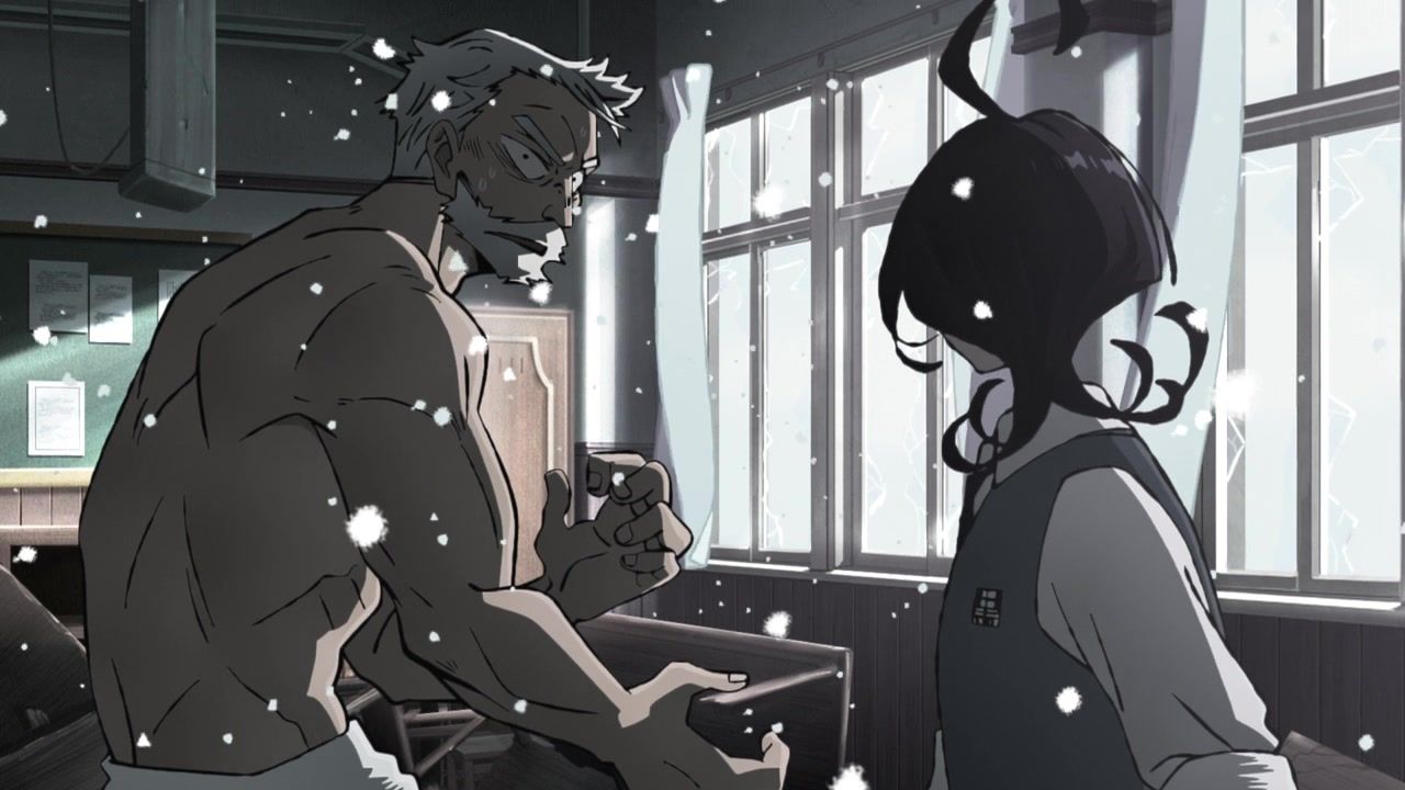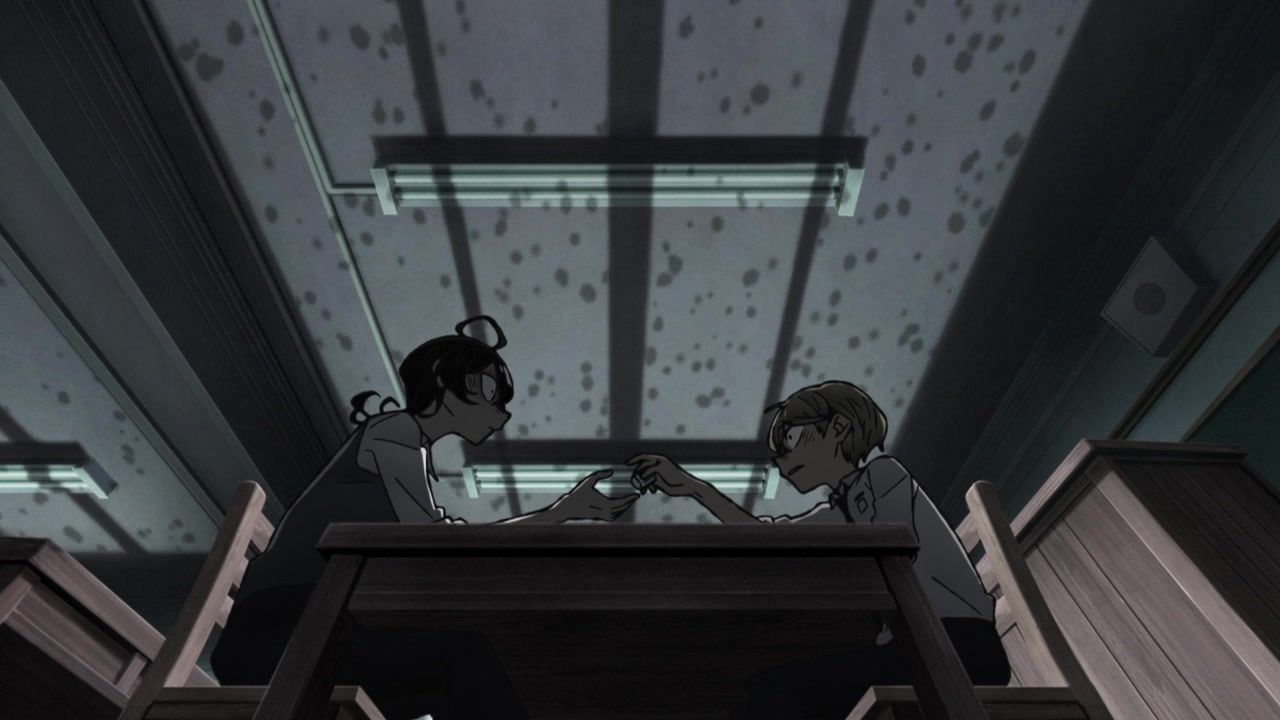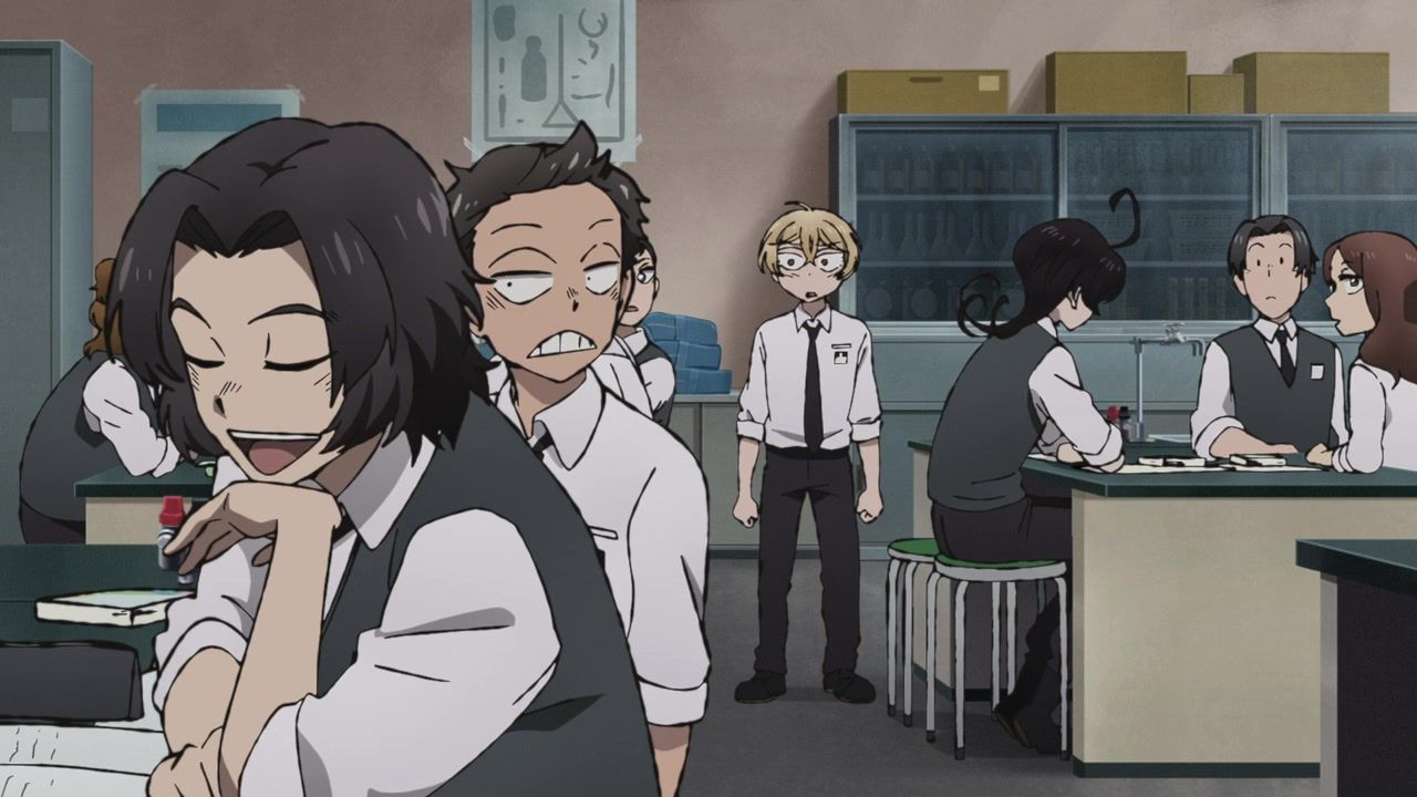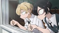 At least the artistic direction is indeed very Science Saru'y. I hesitate to say that it's visually fun or exciting, because there's not actually all that much animation on display. Definitely not one of their headline projects, or even to the level of Yuurei Deco, but still not the norm. It's dragged down by the same sins that most shounen is though, the godawful pacing and characters who can't help but narrate not just every single thought that enters their heads and explain every single thing that is happening to them, but to 'humorously' misconstrue what is happening in order to then explain that as well.