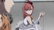 This had more of Symphogear in its bones than I honestly expected. Specifically, the first five or so minutes of the first episode, of Kanade's death sacrificing herself to save the true protagonist. Though since it took the entire episode to do so instead of the first five minutes, the pacing already compares poorly. As does the budget, though there were a few moments. It at least was mostly on actually punching, shooting lasers, and things exploding rather than dancing and posing, though the balance was probably only 60-40, and I'd expect that ratio to drop, not get better. But just being less boy band now is kind of promising. Then again, the magical girlfriend is some kind of interdimensional waif sister with a suicidal predilection for running at killer robots.