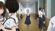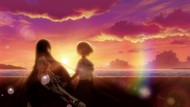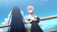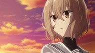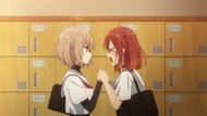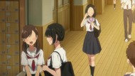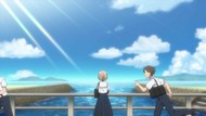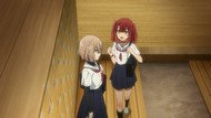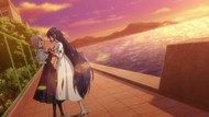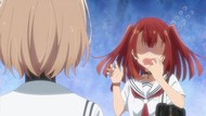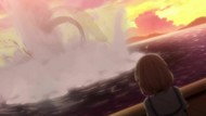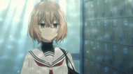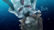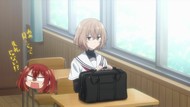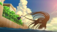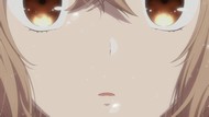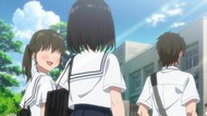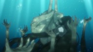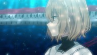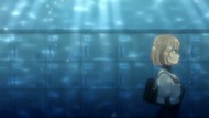 Rounding out yesterday's theme of awkward girls, excessive internal narration, and monster eating, we have a very melodramatic affair, quite literally. To its credit, it does a pretty good job at the atmosphere, especially when it comes to the depressed girl simply shutting up and sinking into the silence and isolation of her thoughts, which it gets much worse about later in the episode. I'm not sure it's exactly the correct symbolism though, as her personal sea-world is full of life and interesting things and beautiful, yet loud, music, but is clearly meant to be her fascination with isolation and death. Except we also have the hyperactive comic relief girl who keeps yanking her out of it, which aside from the ending, is the only thing that makes her happy and smile. It could've been an interesting dynamic if the girl wasn't so over the top jokey and being kind of annoying. It's more jarring than it should be.