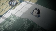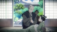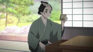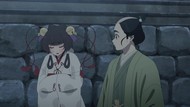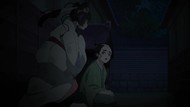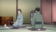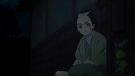 Playing the game "How much of this episode actually needed to exist" with myself probably isn't healthy, but I'm addicted to it. Especially when it comes to episodes like this where the answer ends up being like 80% of the episode. Hell, the first nearly five minutes are about how sickly and infirm he is, the OP plays, time skips forward like 15 years and now he's completely fine. Not just fine. Running away from street murderers with knives. He's not a body builder. He has a weird haircut like every Edo dude. But you just spent a quarter of the episode introducing his character only to immediately abandon it. Was that time really well spent when you have youkai and serial killers that you could be exploring instead?