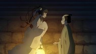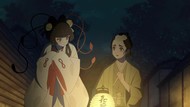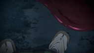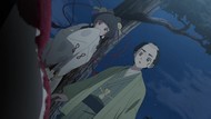 But at the same time, let's look at the youkai side of this story. What do they do? They… hover around him, literally. One of them eventually spooks off the killer by popping up and being bright. That's it. So is that gimmick really a core part of the setting and story either? And then he goes back to… placidly strolling down the street as if he hadn't just been chased by a blood-drenched maniac until the episode ends with him stumbling on a stabbed dude. A shocking occurrance, or at least it would be had he not just come from a blood-drenched maniac with a knife and then forgotten about it. Or had it not been proceeded by them announcing "Wait, the smell of blood is here" and then taking an entire minute to slowly pan around to get both the corpse, his reaction, and the girl youkai's reaction. The pacing is awful, but that's all there is to it.
