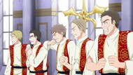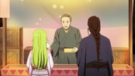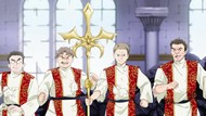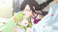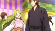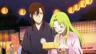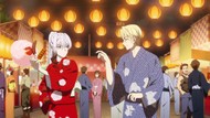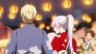 But hey, that's an entire paragraph on the first three minutes of the episode, which is itself a big goddamned problem, because the entire rest of the episode is yet another date. In this medieval European setting, it's time for a traditional Japanese festival, complete with yukatas, chochin lanterns, okame masks, the works. Eat your soba, Duke von Fancyshire. The cultural mess is almost enough to distract you from most of it being a lovey dovey date between her brother and a kid. Oh those silly royals. Good thing they're beating up the right criminals.